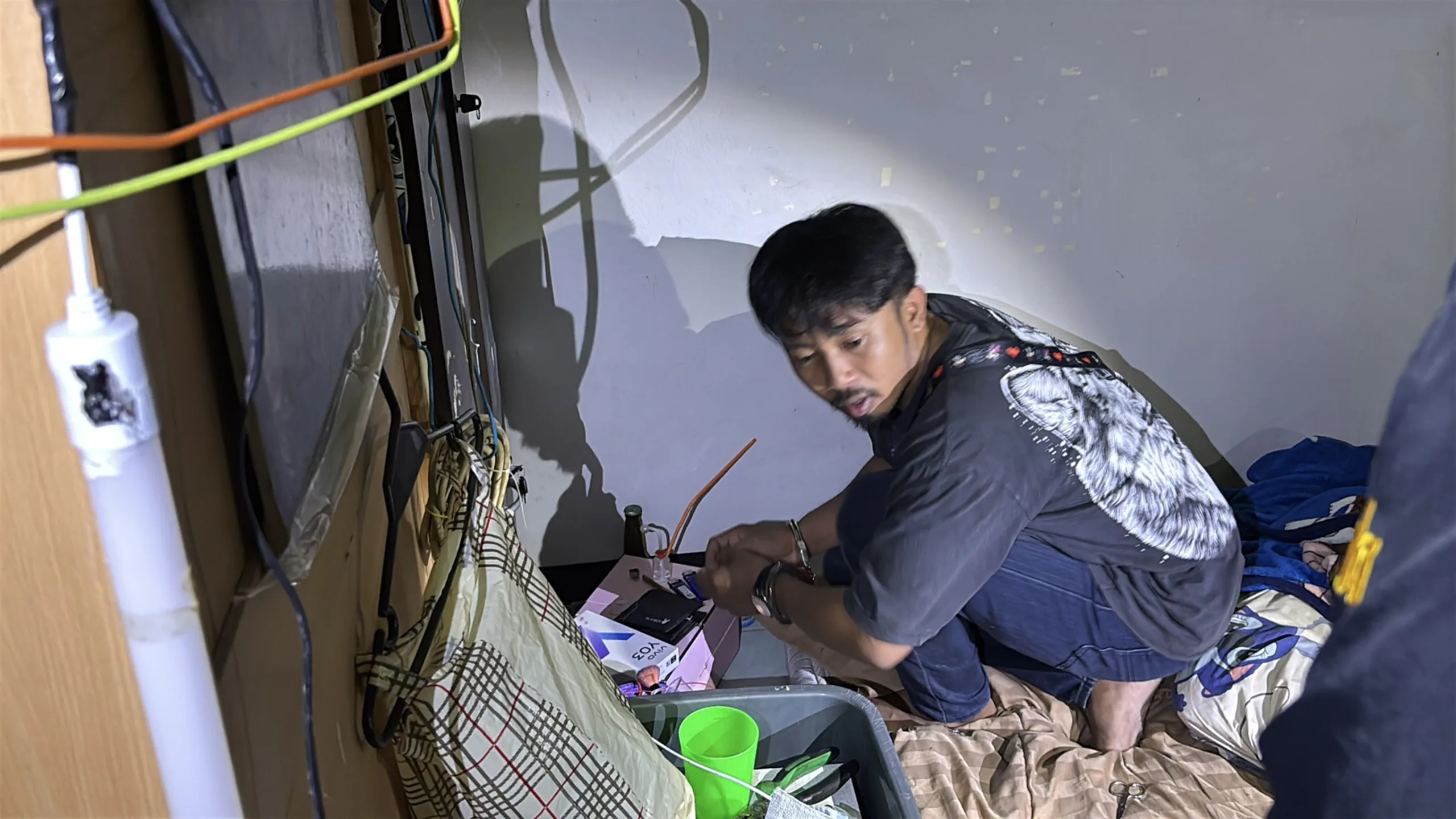 หลังจากรับแจ้ง เจ้าหน้าที่ได้ลงพื้นที่สืบสวนจนสามารถจับกุมผู้เสพยาเสพติดรายหนึ่ง ซึ่งให้การรับสารภาพว่า ซื้อยามาจากชายชื่อ นายอนันต์ชัย เทศพุ่ม หรือ “บังเอ็ม” ซึ่งพักอาศัยอยู่ในเพิงพักหลังร้านหมูกระทะร้างดังกล่าว ต่อมาเจ้าหน้าที่จึงวางแผนใช้สายลับทำการล่อซื้อยาบ้า จำนวน 10 เม็ด เมื่อสายลับได้รับของกลางเรียบร้อย จึงส่งสัญญาณให้ชุดจับกุมเข้าควบคุมตัว นายอนันต์ชัย เทศพุ่ม ได้ภายในห้องพัก พร้อมของกลางยาบ้าที่ใช้ล่อซื้อ และธนบัตรที่ใช้ในการทำธุรกรรม จากการตรวจค้นเพิ่มเติมภายในบ้านพัก พบยาบ้าอีก 2 ถุง และยาไอซ์อีก 1 ถุง ซุกซ่อนอยู่หลังถุงดำข้างสังกะสี รวมของกลางทั้งหมด ยาบ้า 113 เม็ด และยาไอซ์ น้ำหนัก 1.43 กรัม