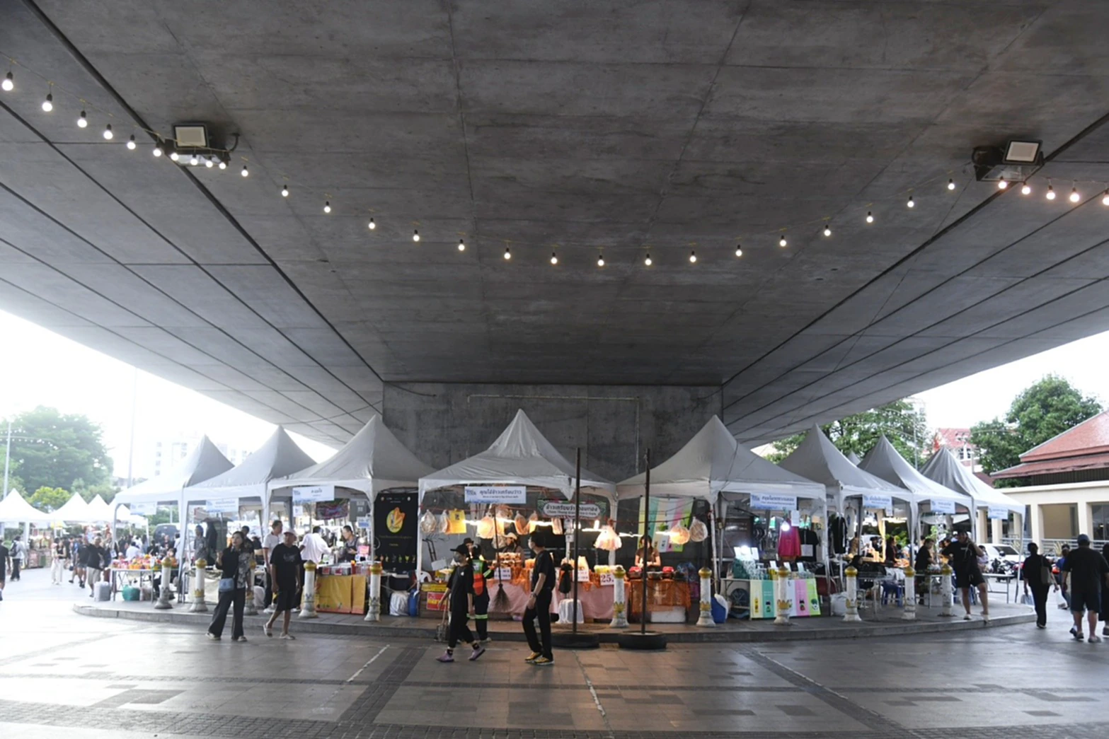 สำหรับบรรยากาศภายในงานใต้สะพานพระราม 8 เป็นไปอย่างคึกคักตั้งแต่ช่วงเย็น ประชาชนทยอยเดินทางมาร่วมกิจกรรมอย่างต่อเนื่อง ส่วนใหญ่แต่งกายด้วยชุดสุภาพโทนสีดำเพื่อร่วมถวายความอาลัย และหลายคนแต่งกายด้วยชุดผ้าไทยงดงาม ซึ่งทางผู้จัดได้จัดบริการให้เช่าชุดไทยในพื้นที่ ในราคาเพียง 100 บาท เพื่อร่วมสืบสานประเพณีไทยในค่ำคืนลอยกระทงปีนี้