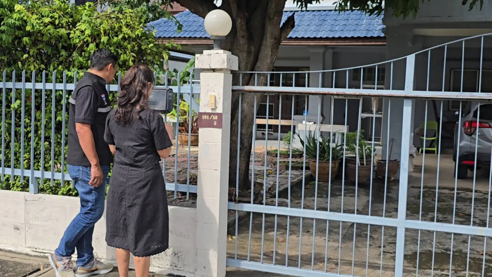 เวลาต่อมาทาง จ่าสิบเอกมงคล อัศวนิโครธร นายกเทศมนตรีเทศบาลเมืองไทรม้า  นายพรชัย คงชุ่ม รองนายกเทศมนตรี  นางกัลยาณศิริ ผอ.กองสวัสดิการสังคม เทศบาลเมืองไทรม้า นายศุภเดช ทับแถน ผู้ใหญ่บ้านหมู่ 2 ตำบลไทรม้า พร้อมคณะเจ้าหน้าที่ ได้เดินทางมาที่บ้านของสาวใหญ่ และตะโกนเรียกอยู่นานกว่าครึ่งชั่วโมง โดยพบว่ามีรถเก๋งจอดอยู่ในบ้าน ประตูไม่ได้ล็อค มีรองเท้าถอดอยู่ บริเวณหน้าประตูทางเข้าบ้าน แต่ก็ไร้การตอบรับหรือออกมาพบเจ้าหน้าที่เทศบาลแต่อย่างใด