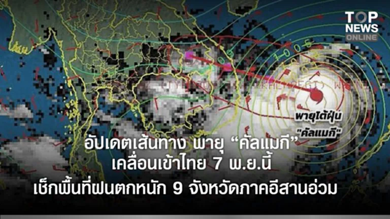 อุตุฯอัปเดตเส้นทาง พายุ “คัลแมกี” จ่อเคลื่อนเข้าไทย 7 พ.ย.นี้ เช็กด่วนพื้นที่ฝนตกหนัก อีสานตอนล่าง 9 จังหวัดอ่วม อยู่โซน “สีแดง” เฝ้าระวังใกล้ชิด