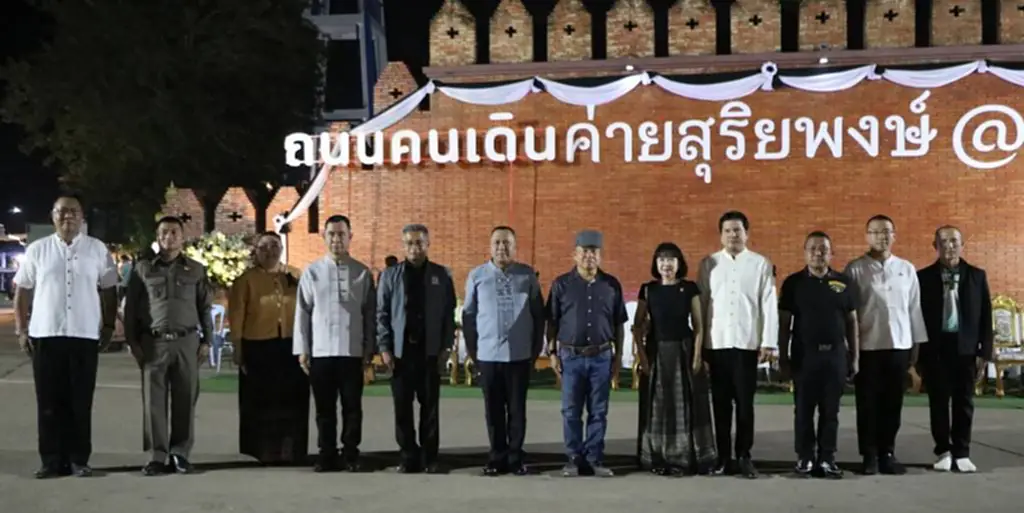 วันที่ 5 พฤศจิกายน 2568 เวลา 18.00 น. ณ บริเวณหน้าค่ายสุริยพงษ์ ตำบลในเวียง อำเภอเมือง จังหวัดน่าน พลตรี บุญญฤทธิ์ เกษตรเวทิน ผู้บัญชาการมณฑลทหารบกที่ 38 เป็นประธานเปิดโครงการ “ถนนคนเดินหน้าค่ายสุริยพงษ์” ประจำปี 2568 ควบคู่กับการจัดงานประเพณีลอยกระทง โดยมีนายบรรจง ขุนเพชร รองผู้ว่าราชการจังหวัดน่าน พร้อมหัวหน้าส่วนราชการ ภาคเอกชน พ่อค้าแม่ค้า และประชาชนเข้าร่วมอย่างคับคั่ง