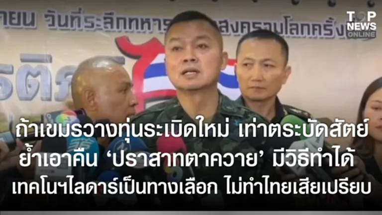 "แม่ทัพกุ้ง" ลั่นถ้ากัมพูชาวางทุ่นระเบิดใหม่เท่าตระบัดสัตย์ ย้ำเอาคืน "ปราสาทตาควาย" มีวิธีทำได้ เทคโนฯไลดาร์เป็นทางเลือก