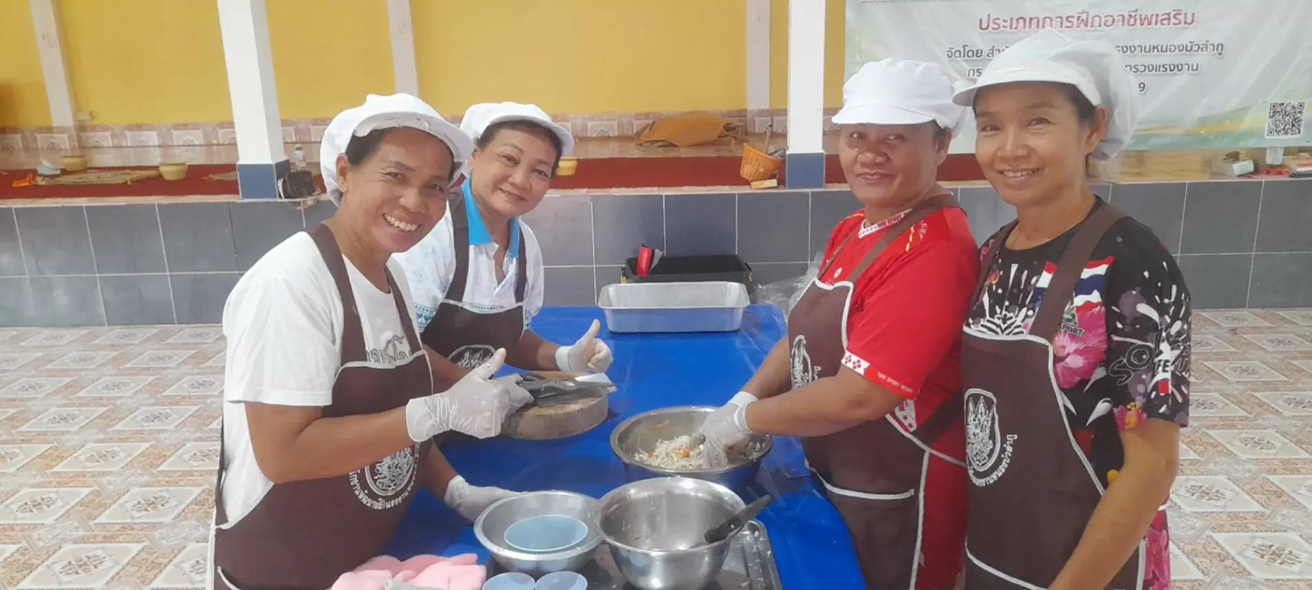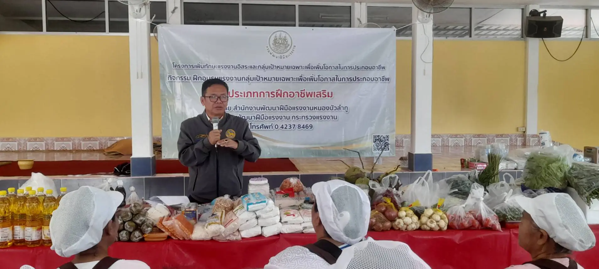 เมื่อวันที่ 6 พฤศจิกายน 2568 ผู้สื่อข่าวรายงานว่า ณ ศาลาประชาคมบ้านริมคลองพัฒนาหมู่ที่ 23 ตำบลนากอก อำเภอศรีบุญเรือง จังหวัดหนองบัวลำภู ผู้อำนวยการสำนักงานพัฒนาฝีมือแรงงานหนองบัวลำภู มอบหมายให้ นายเทศกาล คำดี หัวหน้าฝ่ายพัฒนาฝีมือแรงงาน เป็นประธานเปิดงาน โดยฝ่ายพัฒนาฝีมือแรงงาน ดำเนินการเปิดฝึกอบรม ตามโครงการเพิ่มทักษะแรงงานอิสระ และกลุ่มเป้าหมายเฉพาะ เพื่อเพิ่มโอกาสในการประกอบอาชีพ ( แรงงานนอกระบบ ) ประเภทการฝึกอาชีพเสริม หลักสูตรการประกอบอาหารไทยจำนวน 30 ชั่วโมง ซึ่งมีผู้เข้ารับการฝึกอบรมจำนวน 20 คน เพื่อให้กลุ่มเป้าหมายสร้างงาน สร้างรายได้และสร้างอาชีพ