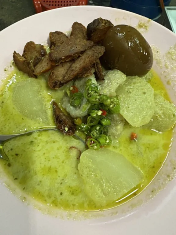 แกงเขียวหวานไก่ใส่เลือดรสอร่อยถูกใจ อาเสี่ย ท่านเจ้าสัว ย่านเยาวราช และคนแถบนี้ คือคงความเข้มข้นหอมของเครื่องแกงไทยๆไว้ รวมถึงหัวกะทิที่หอมมัน แต่ลดส่วนความเผ็ดร้อนของพริก อร่อยลงตัว เป็นที่ถูกอกถูกใจ ของคนไทยเชื้อสายจีน ในย่านนี้