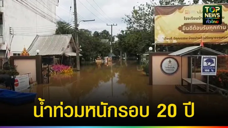 สุโขทัย น้ำท่วมโรงเรียนบ้านไร่พิทยาคม หนักสุดในรอบ 20 ปี จนต้องพายเรือเข้า-ออก