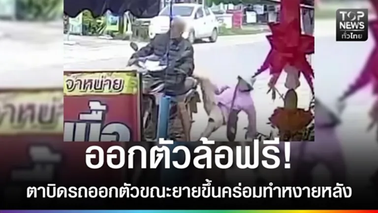 อุทาหรณ์..2 ตา-ยาย ขับ จยย.มาซื้อหมู ขากลับตารีบบิดรถขณะยายกำลังขึ้นนั่ง สุดท้าย หงายหลังตกรถแขนหัก