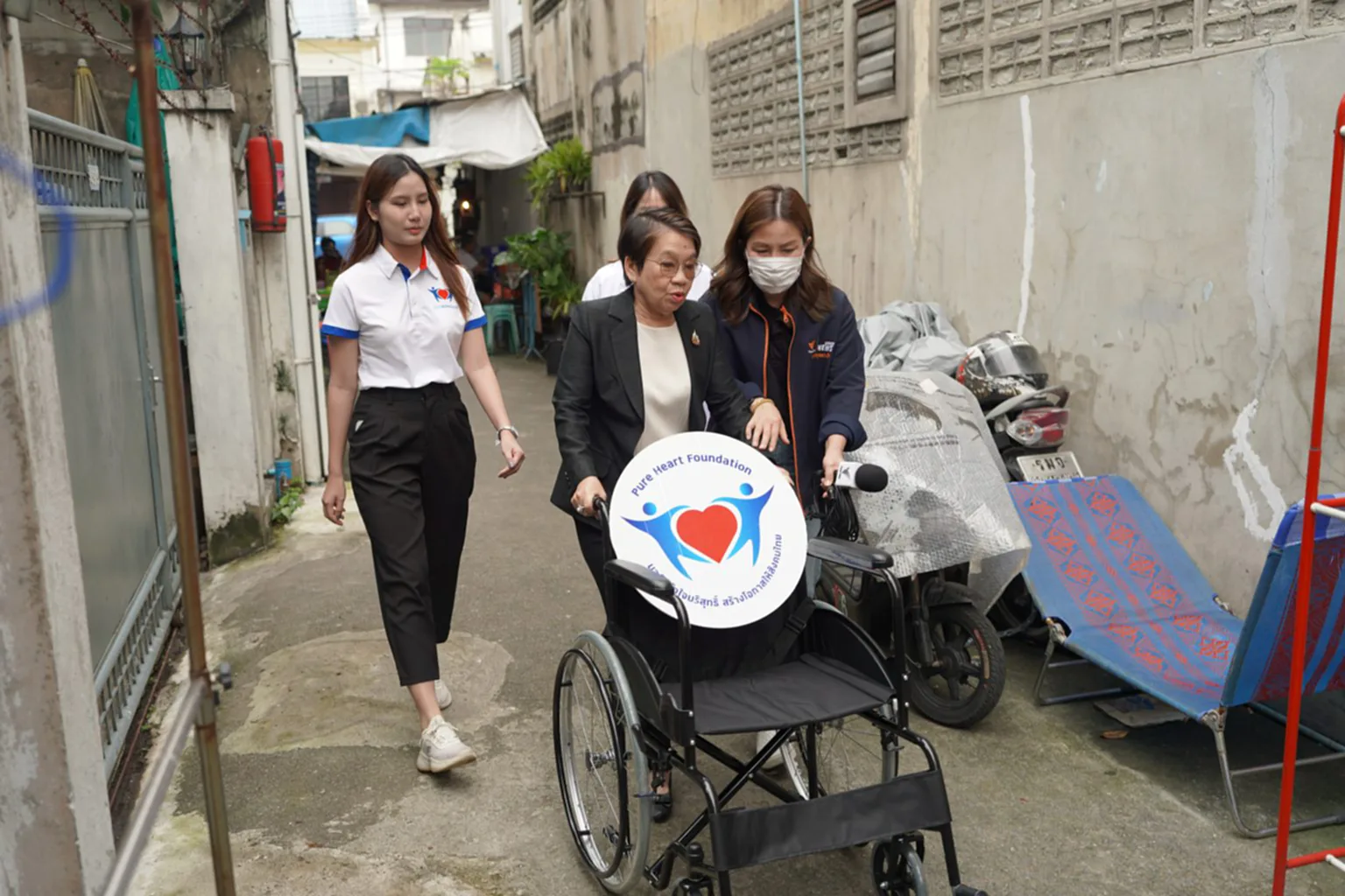 มูลนิธิหัวใจบริสุทธิ์ผนึกกำลังกับทีมงานรายการ สถานีประชาชน ของสำนักข่าวไทยพีบีเอส (Thai PBS) ลงพื้นที่ส่งมอบรถเข็นวีลแชร์ เพื่อบรรเทาความยากลำบากและเติมเต็มกำลังใจให้แก่ครอบครัวผู้สูงอายุวัย 88 ปี