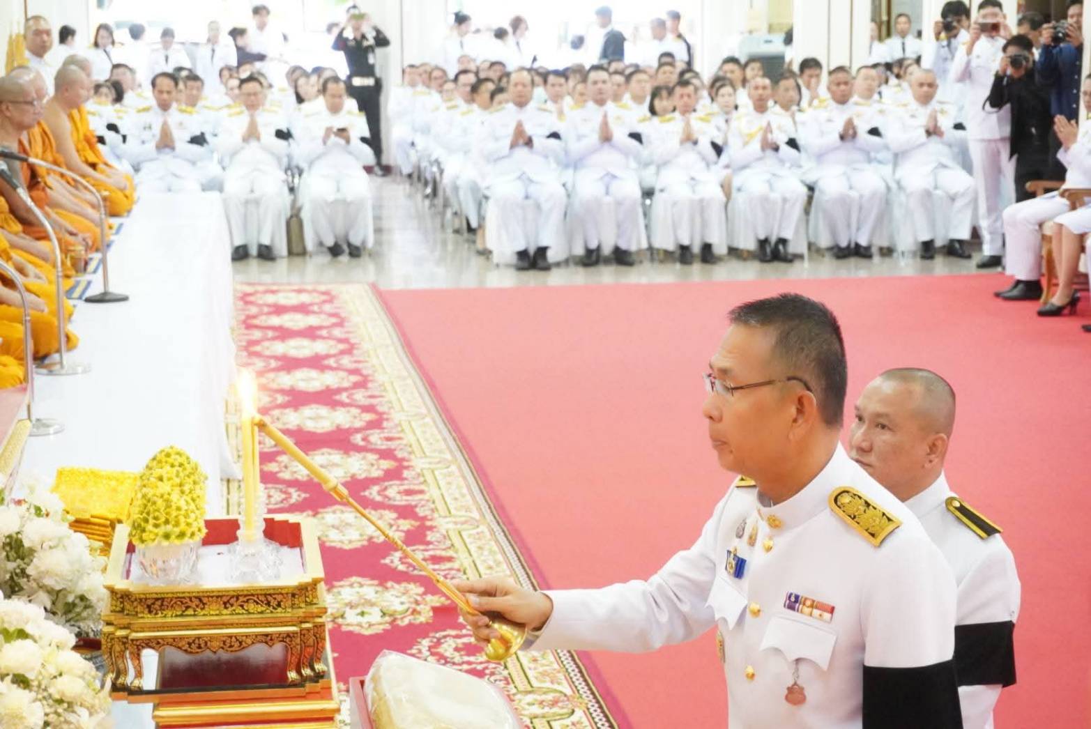โดยมีนายชัยวัฒน์ ชื่นโกสุม ผู้ว่าราชการจังหวัดนครราชสีมา เป็นประธานฝ่ายฆราวาส ดร.ยลดา หวังศุภกิจโกศล นายก อบจ. นครราชสีมา นายชัชวาลย์ วงจร รองนายกเทศมนตรีนครนครราชสีมา ข้าราชการ ศาล ทหาร ตำรวจ และประชาชนทุกภาคส่วนร่วมพิธี เพื่อแสดงความจงรักภักดีและน้อมรำลึกในพระมหากรุณาธิคุณอันหาที่สุดมิได้.