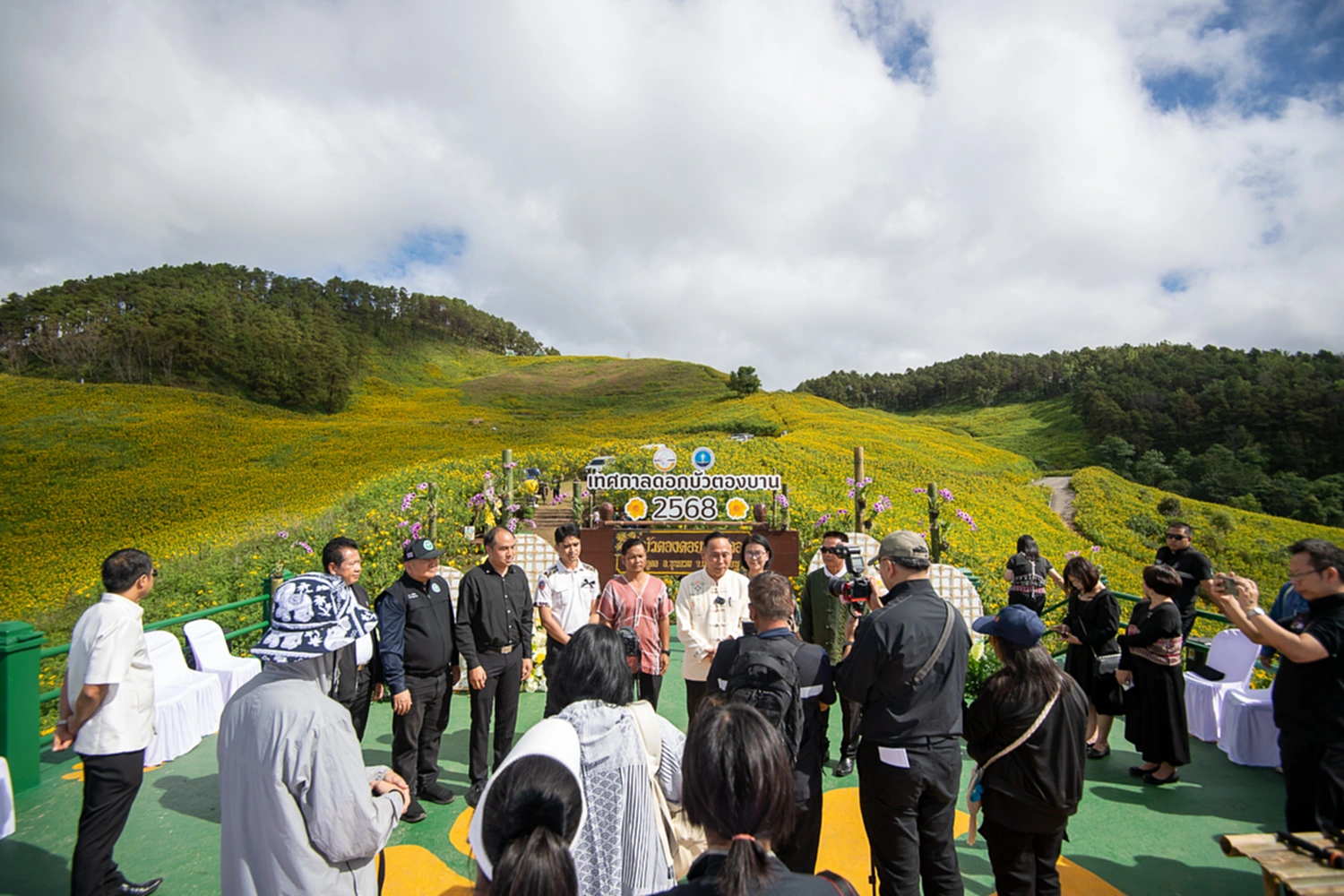 โดยมี นางสาวริชญา ชะอุ่ม ท่องเที่ยวและกีฬาแม่ฮ่องสอน นายธารา ชมสมองเลิศ นายกองค์การบริหารส่วนตำบลแม่อูคอ นายภาคภูมิ วารปรีดี ปลัดอำเภอขุนยวม กลุ่มงานความมั่นคง ผู้แทนนายอำเภอขุนยวม และนายจำลอง จีโนเป็ง นายกเทศมนตรีดำบลขุนยวม ร่วมการแถลงข่าว เทศกาลดอกบัวตองบาน ได้กำหนดเปิดอย่างเป็นทางการในวันที่ 11 พฤศจิกายน 2568 และ กิจกรรมส่งเสริมการท่องเที่ยวเชิงกีฬา ดนตรีและศิลปะ จังหวัดแม่ฮ่องสอน จัดขึ้นระหว่าง วันที่ 13-17 พฤศจิกายน 2568
