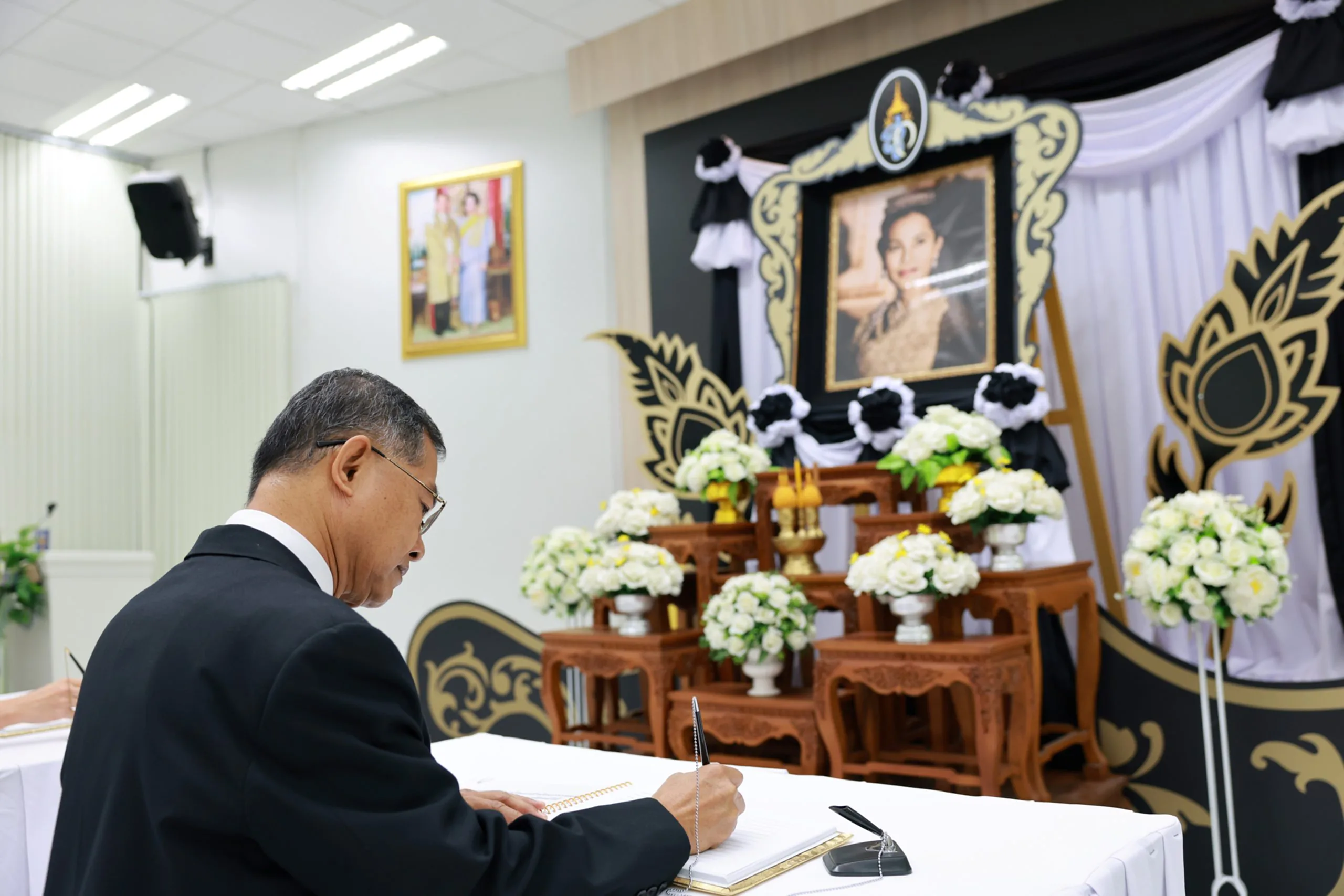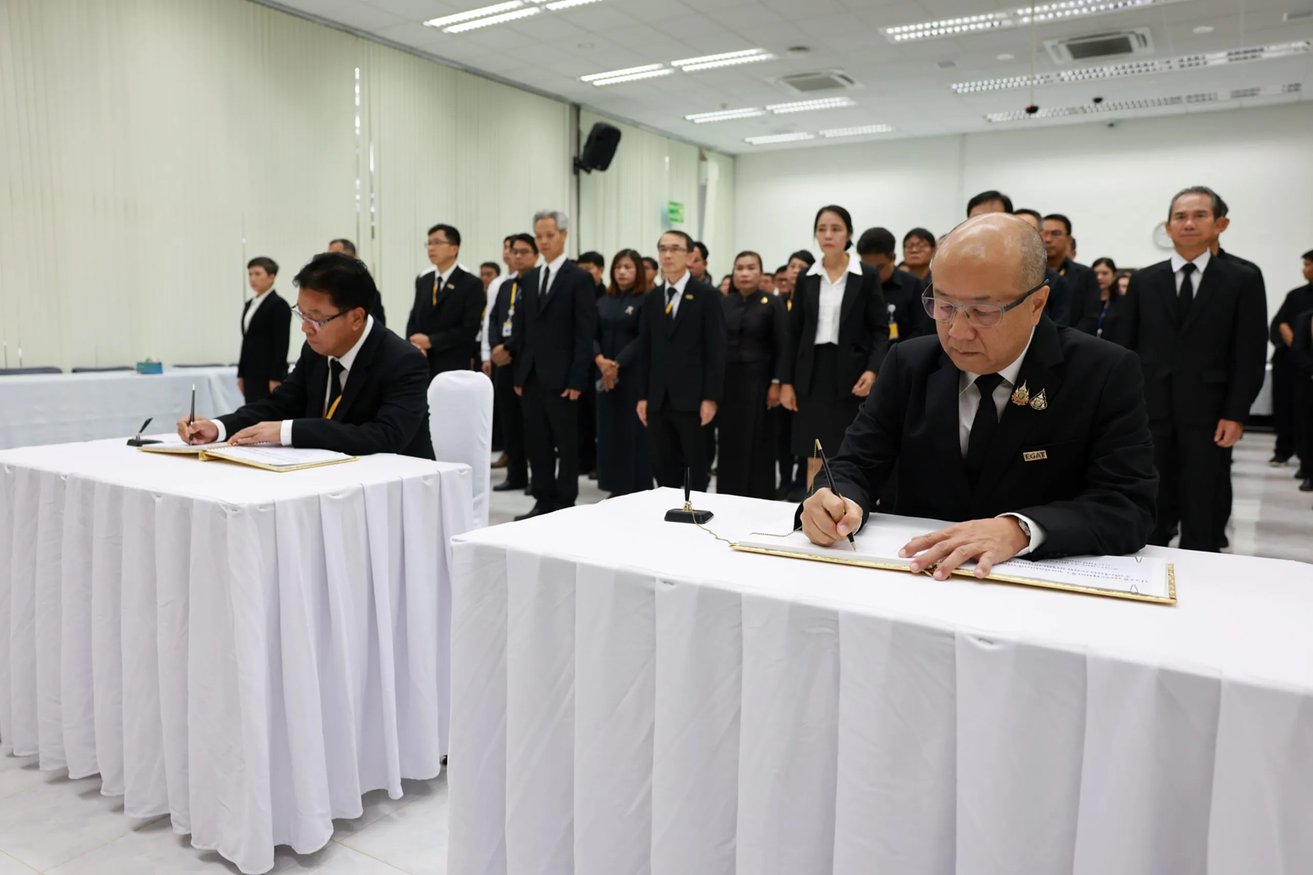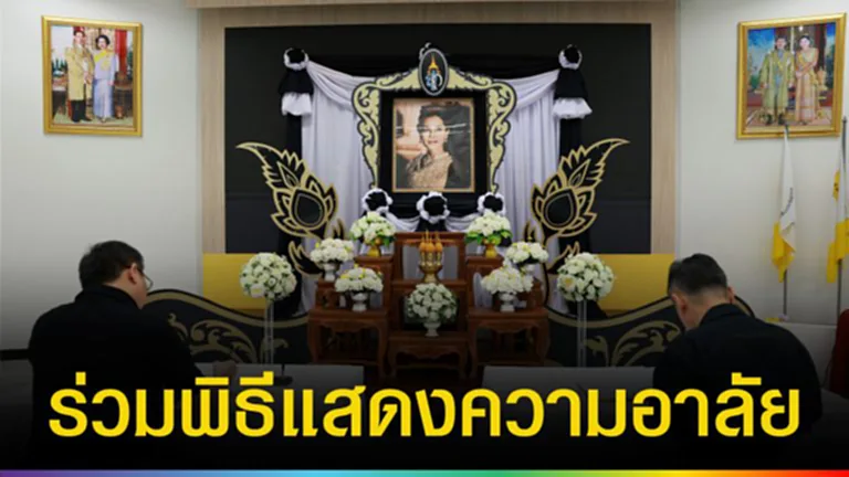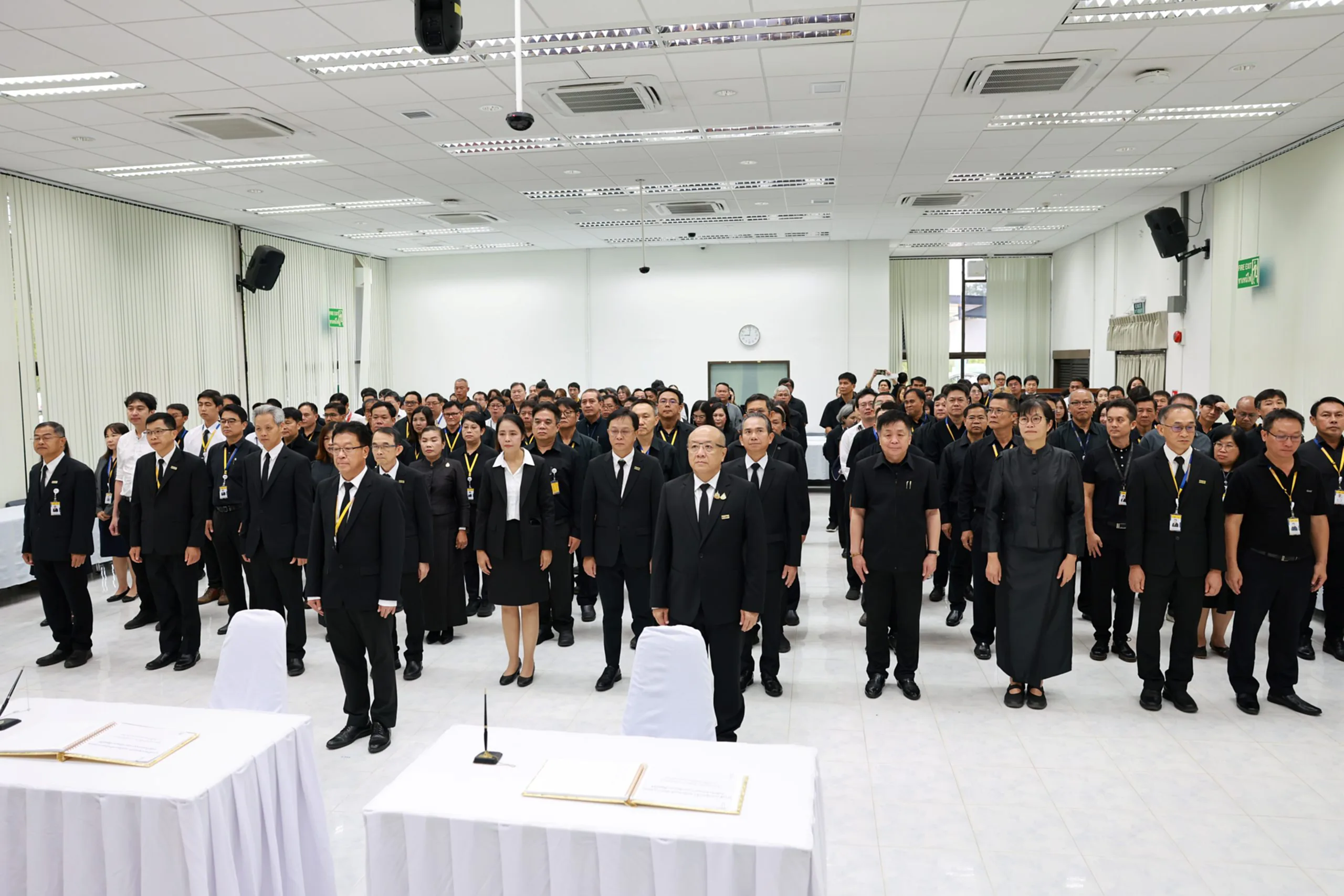 โดยผู้เข้าร่วมพิธีร่วมกันถวายความเคารพเบื้องหน้าพระฉายาลักษณ์ ยืนสงบนิ่งเป็นเวลา 1 นาที และลงนามในสมุดแสดงความอาลัย เพื่อแสดงความจงรักภักดีและสำนึกในพระมหากรุณาธิคุณอันหาที่สุดมิได้