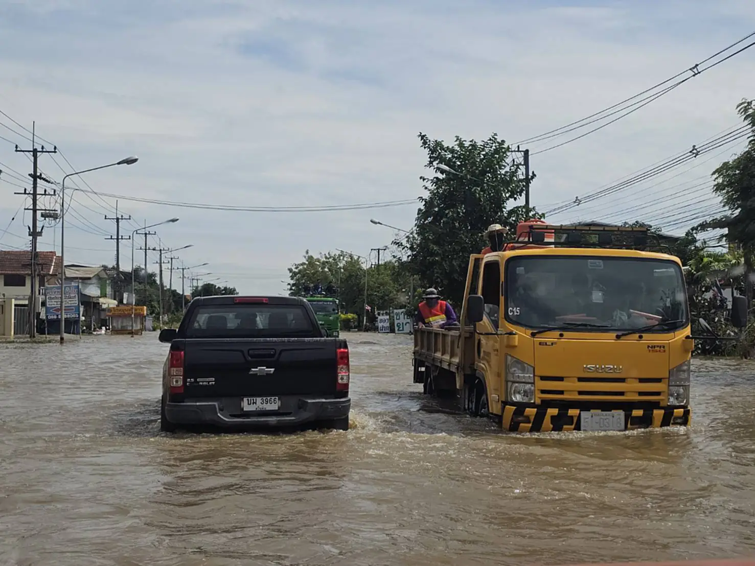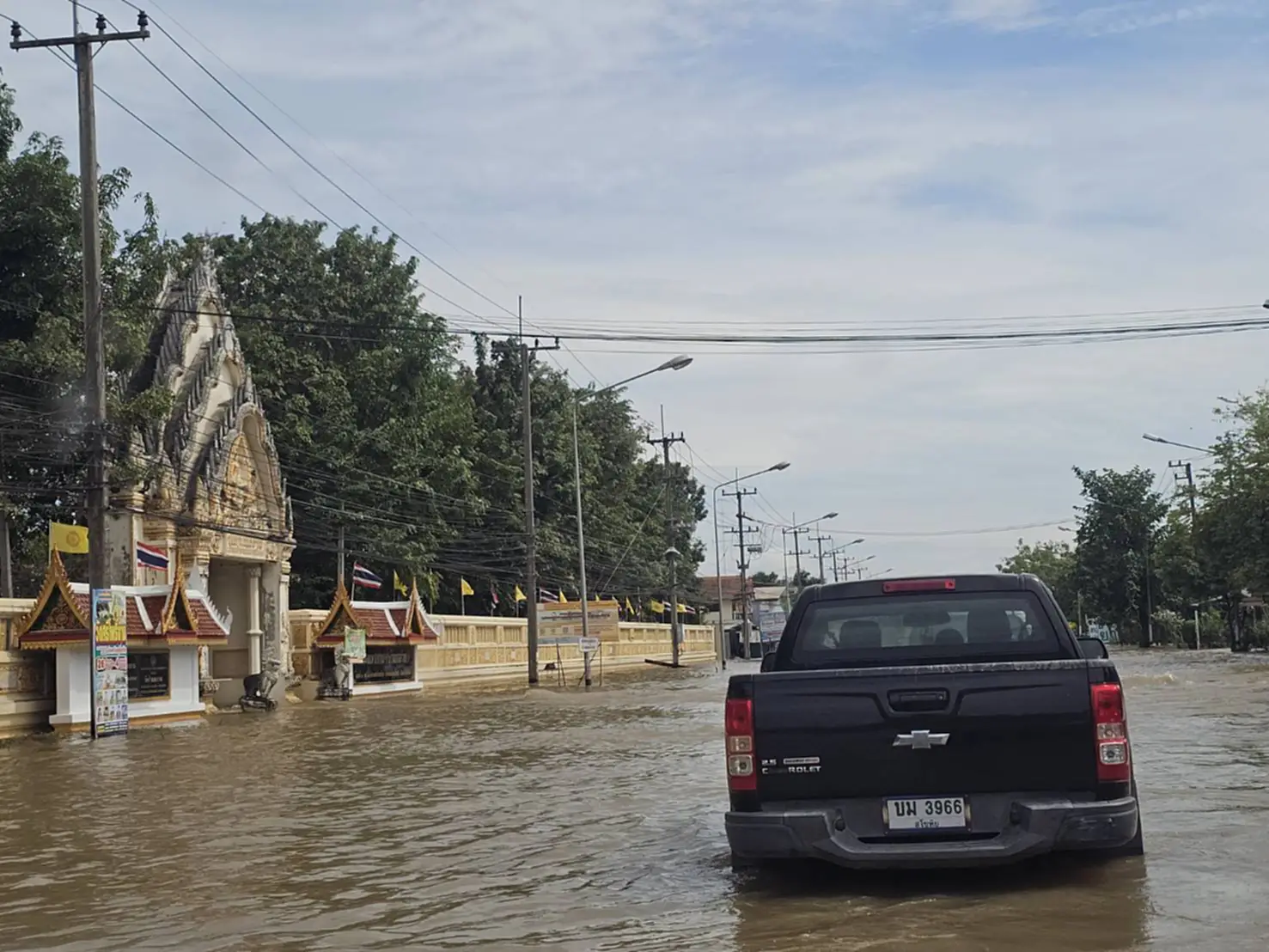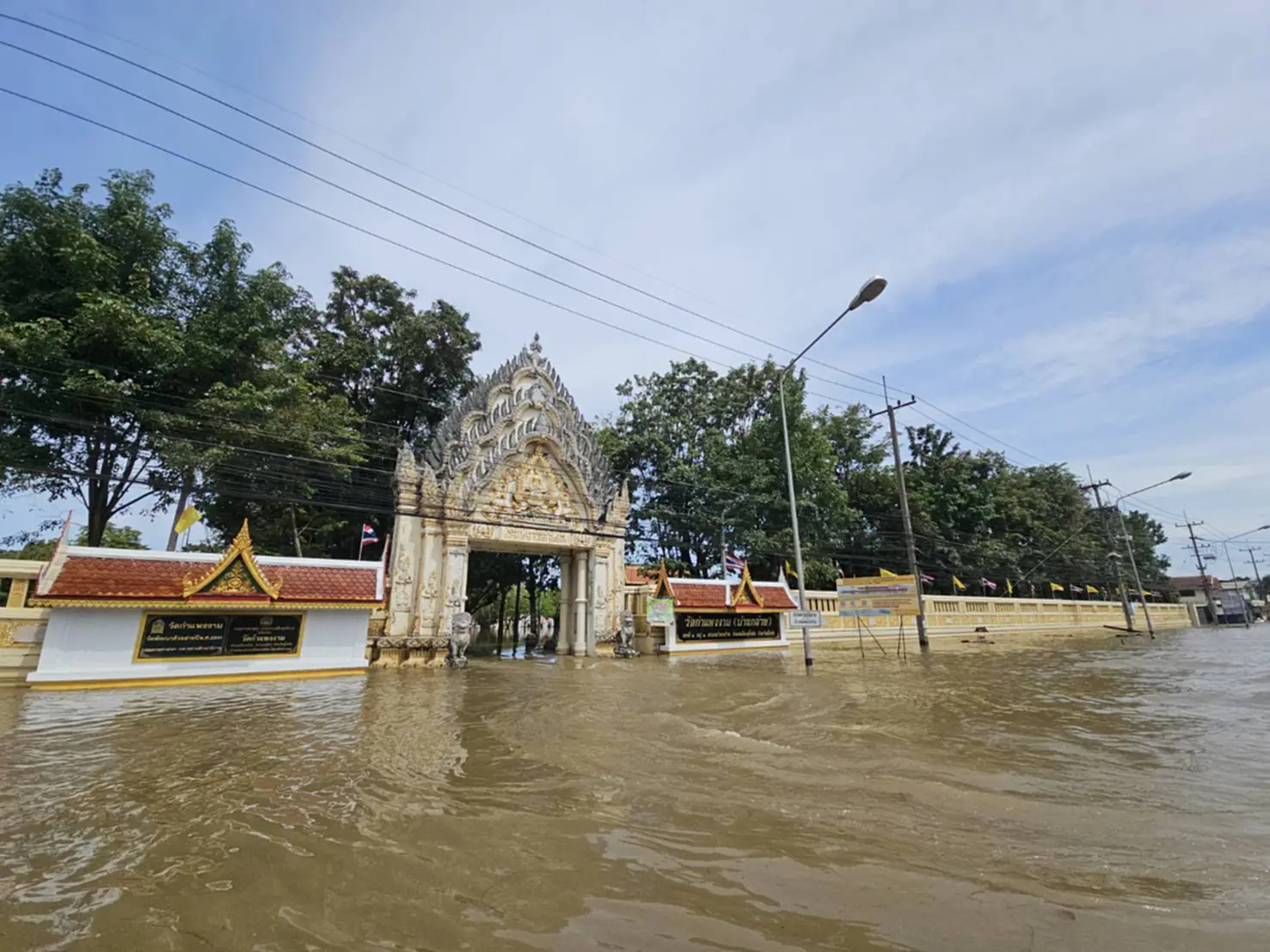 วันนี้ (7 พ.ย.68) เวลา11.30น. ผู้สื่อข่าวรายงานว่า น้ำจากอ่างเก็บน้ำแม่มอกที่ไหลบ่าท่วม อ.ทุ่งเสลี่ยม อ.ศรีสำโรง และไหลข้ามถนนสายบายสุโขทัย-ตาก ก่อนที่จะไหลลงทุ่งทะเลหลวง ล่าสุดมวลน้ำได้ไหลลงคลองแม่รำพันและหลากทุ่งเข้าท่วมพื้นที่บ้านหางคลอง หมู่ 5 ต.บ้านกล้วย อ.เมือง จ.สุโขทัย ซึ่งเป็นหมู่บ้านติดกับคลองแม่รำพันและทุ่งทะเลหลวงทำให้ระดับน้ำในหมู่บ้านท่วมสูงเนื่องจากรับน้ำทั้งสองสายทั้งสายทุ่งทะเลหลวงและคลองแม่รำพัน จนทำให้วัดกำแพงซึ่งอยู่ติดกับคลองแม่รำพันถูกน้ำท่วมภายในวัดสูงกว่า 1.50 เมตรและไหลบ่าท่วมด้านหน้าวัดกำแพงงานสูง