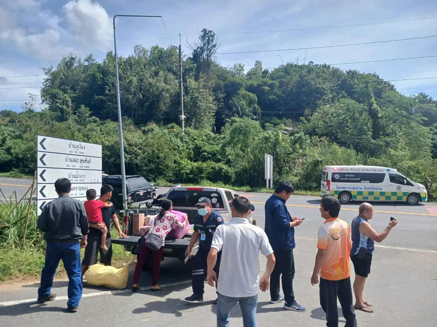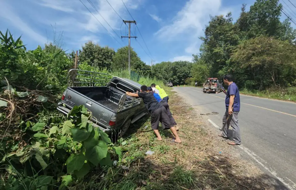 ที่เกิดเหตุ พบรถยนต์กระบะ 4 ประตู ยี่ห้ออีซูซุ สีเทา ทะเบียน 2843 น่าน พลิกตะแคงอยู่ในร่องน้ำ มี นายมงคล (สมมุติสงวนนามสกุล) อายุ 44 ปี ที่อยู่ อ.หาดใหญ่ จ.สงขลา เป็นคนขับ โดยมีผู้ร่วมเดินทางบาดเจ็บรวม 9 ราย