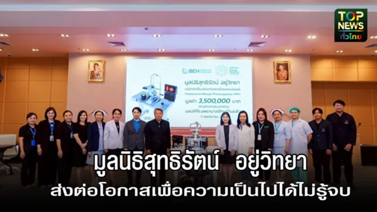 โดยมูลนิธิสุทธิรัตน์ อยู่วิทยา ให้การสนับสนุนทุนทรัพย์มูลค่า 11,050,000 บาท (สิบเอ็ดล้านห้าหมื่นบาทถ้วน) ในการผ่าตัดต้อกระจกให้กับผู้ป่วย ซึ่งความพิเศษของกองทุนนี้ สามารถทำให้ทีมจักษุแพทย์ ตัดสินใจรักษาผู้ป่วยได้ทันที โดยไม่ต้องทิ้งใครไว้ข้างหลัง
