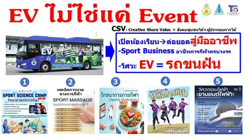 สำหรับรถบัสไฟฟ้าที่จะมอบให้ทางโรงเรียน เป็นรถที่ใช้พลังงานไฟฟ้า EV100% รุ่นเดียวกับที่ให้บริการในระบบขนส่งสาธารณะของ TSB ที่ได้มาตรฐานด้าน ความปลอดภัย สิ่งแวดล้อม และพลังงานสะอาดอย่างครบถ้วน
