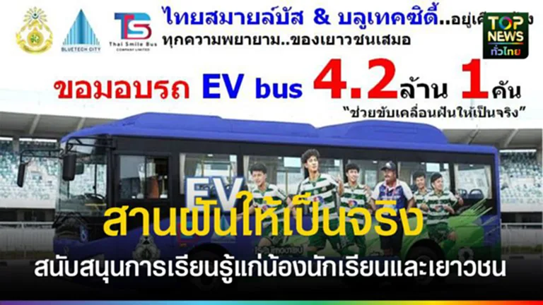 นางสาวกุลพรภัสร์ วงศ์มาจารภิญญา ประธานเจ้าหน้าที่บริหาร บริษัท ไทย สมายล์ บัส จำกัด (TSB) เปิดเผยว่า จากความตั้งใจที่จะ “ส่งต่อโอกาสสู่เยาวชน” TSB ในฐานะบริษัทขนส่งสาธารณะพลังงานสะอาด ขอประกาศมอบ รถบัสไฟฟ้าขนาด 7.96 เมตร จำนวน 1 คัน มูลค่า 4.2ล้านบาท
