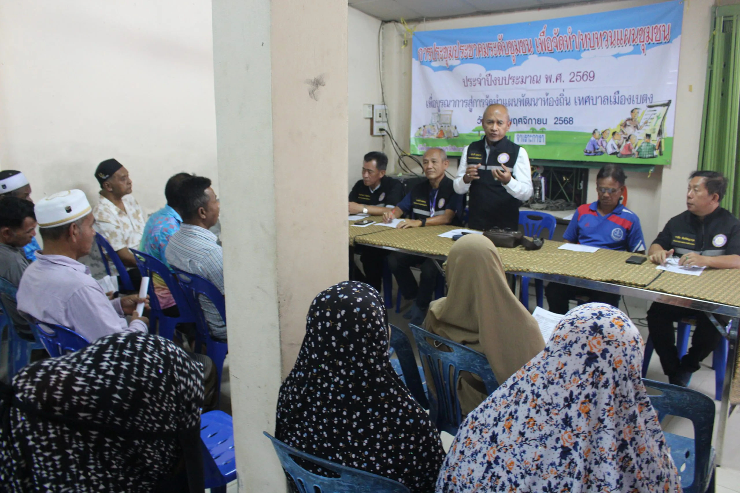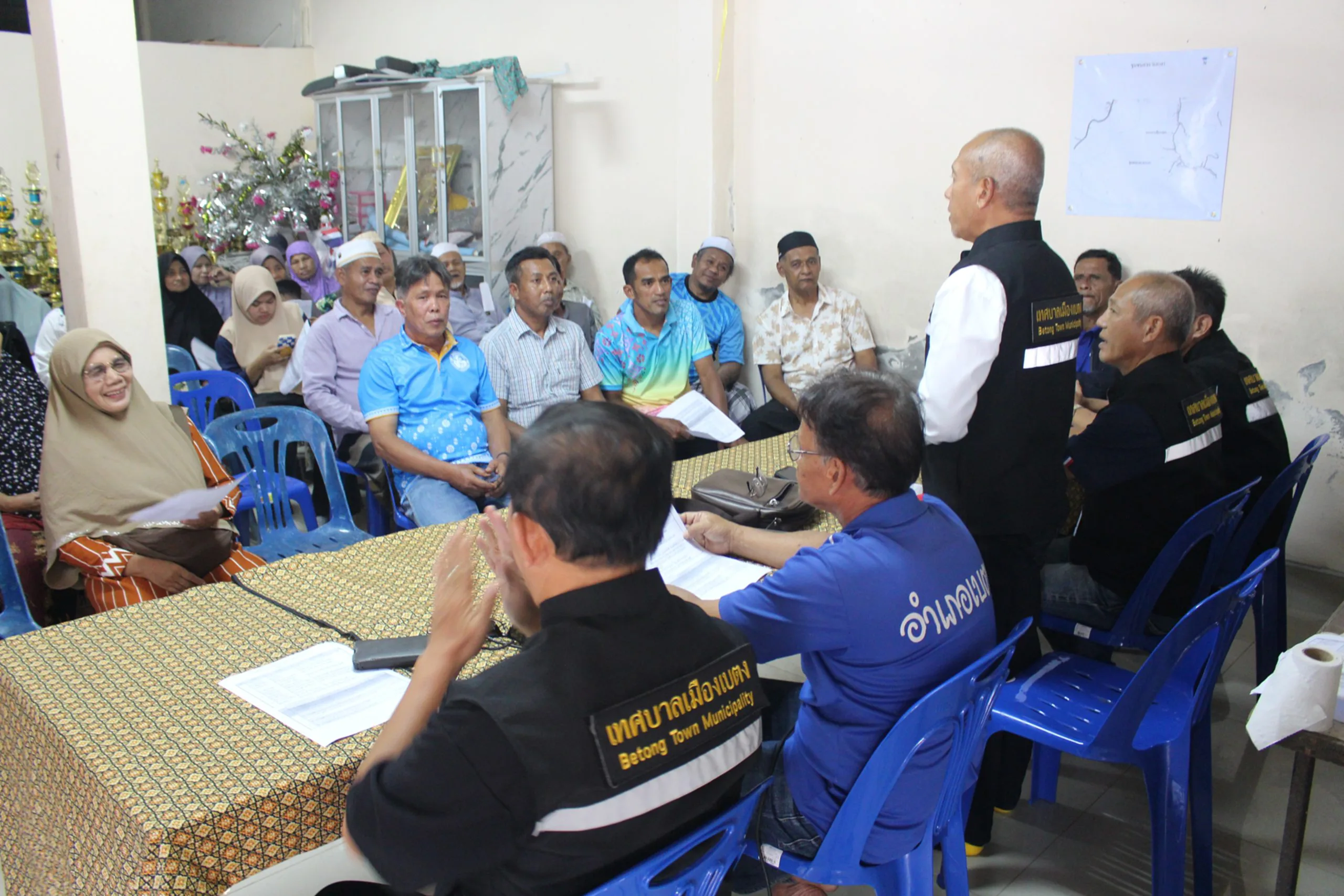 วันที่ 8 พ.ย. 2568 ที่ทำการชุมชนจาเราะกางา อ.เบตง จ.ยะลา นายซาบรี แดเมาะ รองนายกเทศมนตรีเมืองเบตง เป็นประธานเปิดประชุมเวทีประชาคมเพื่อจัดทำแผนชุมชนประจำปี พ.ศ.2569 ของชุมชนจาเราะกางา เพื่อสนองนโยบายรัฐบาลในการเสริมสร้างกระบวนการเรียนรู้และพัฒนาขีดความสามารถของชุมชนให้สามารถจัดการพัฒนาและแก้ไขปัญหาในท้องถิ่นได้ด้วยตนเองอย่างมีประสิทธิภาพ โดยใช้กระบวนการจัดทำแผนชุมชนเป็นเครื่องมือสำคัญ นำไปสู่การสร้างชุมชนเข้มแข็งและลดความเหลื่อมล้ำทางเศรษฐกิจในระดับพื้นที่