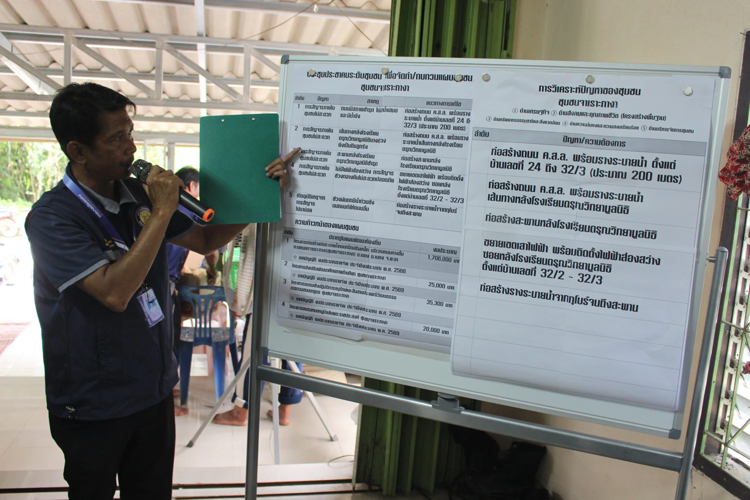 ด้านนายสมบูรณ์ ดือรือมอ ประธานชุมชนบ้านจาเราะกางา กล่าวว่า ชุมชนจาเราะกางายังประสบปัญหาหลายด้าน เช่น ถนนภายในชุมชนชำรุดและมีน้ำขัง จึงเสนอให้ก่อสร้างถนนคอนกรีตพร้อมรางระบายน้ำประมาณ 200 เมตร รวมถึงการก่อสร้างสะพานและถนนหลังโรงเรียนดรุณวิทยามูลนิธิ นอกจากนี้ ชาวบ้านยังขอให้ขยายเขตเสาไฟฟ้าและติดตั้งไฟส่องสว่างเพิ่มเติม เพื่อความปลอดภัยในช่วงกลางคืน รวมถึงปรับปรุงระบบน้ำประปาภูเขาให้สะอาดและเพียงพอต่อการอุปโภคบริโภค โดยเชื่อว่าการจัดทำแผนชุมชนในครั้งนี้จะช่วยให้ปัญหาเหล่านี้ได้รับการแก้ไขอย่างเป็นรูปธรรมในอนาคต