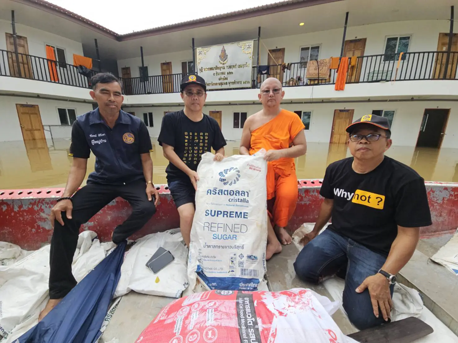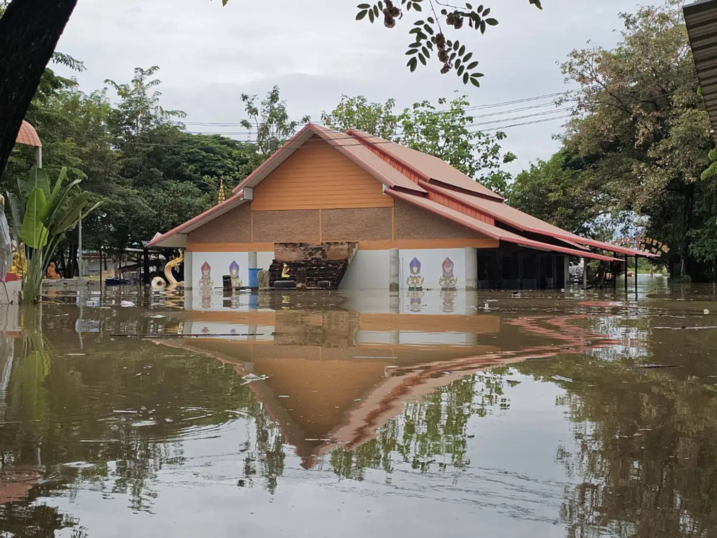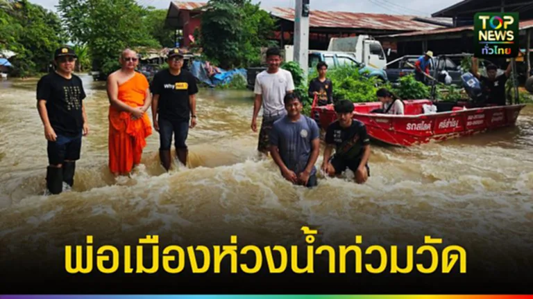 พ่อเมืองห่วงใยวัดพลายชุมพล ลงเรือลุยน้ำให้การช่วยเหลือ