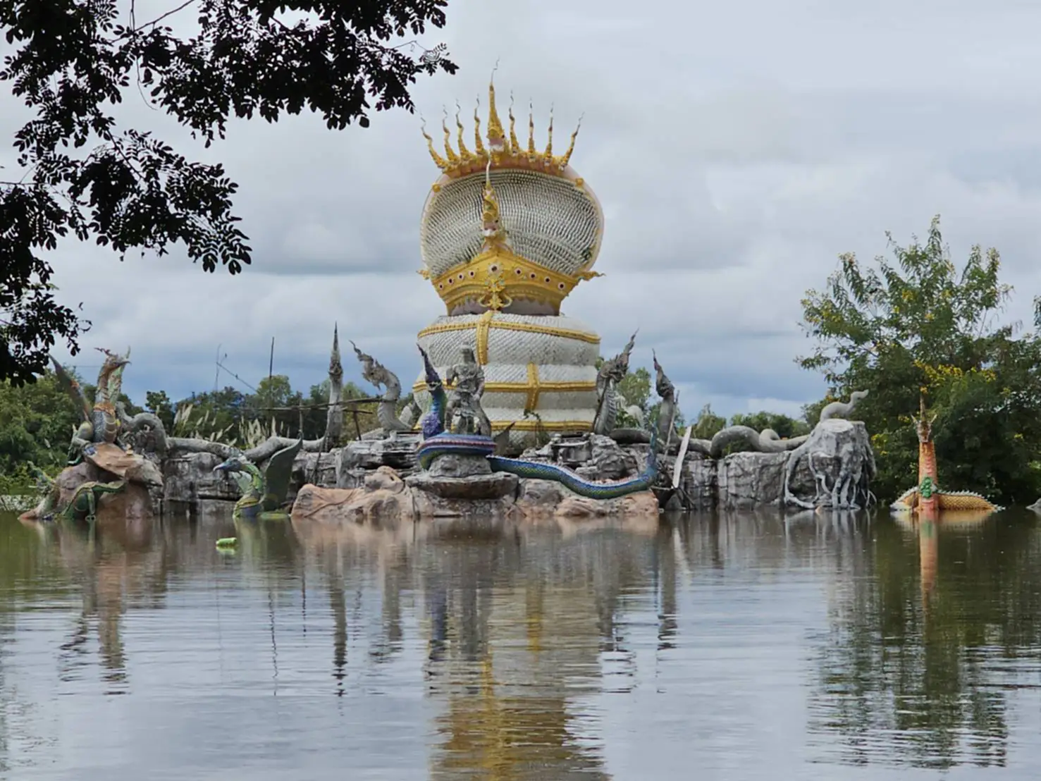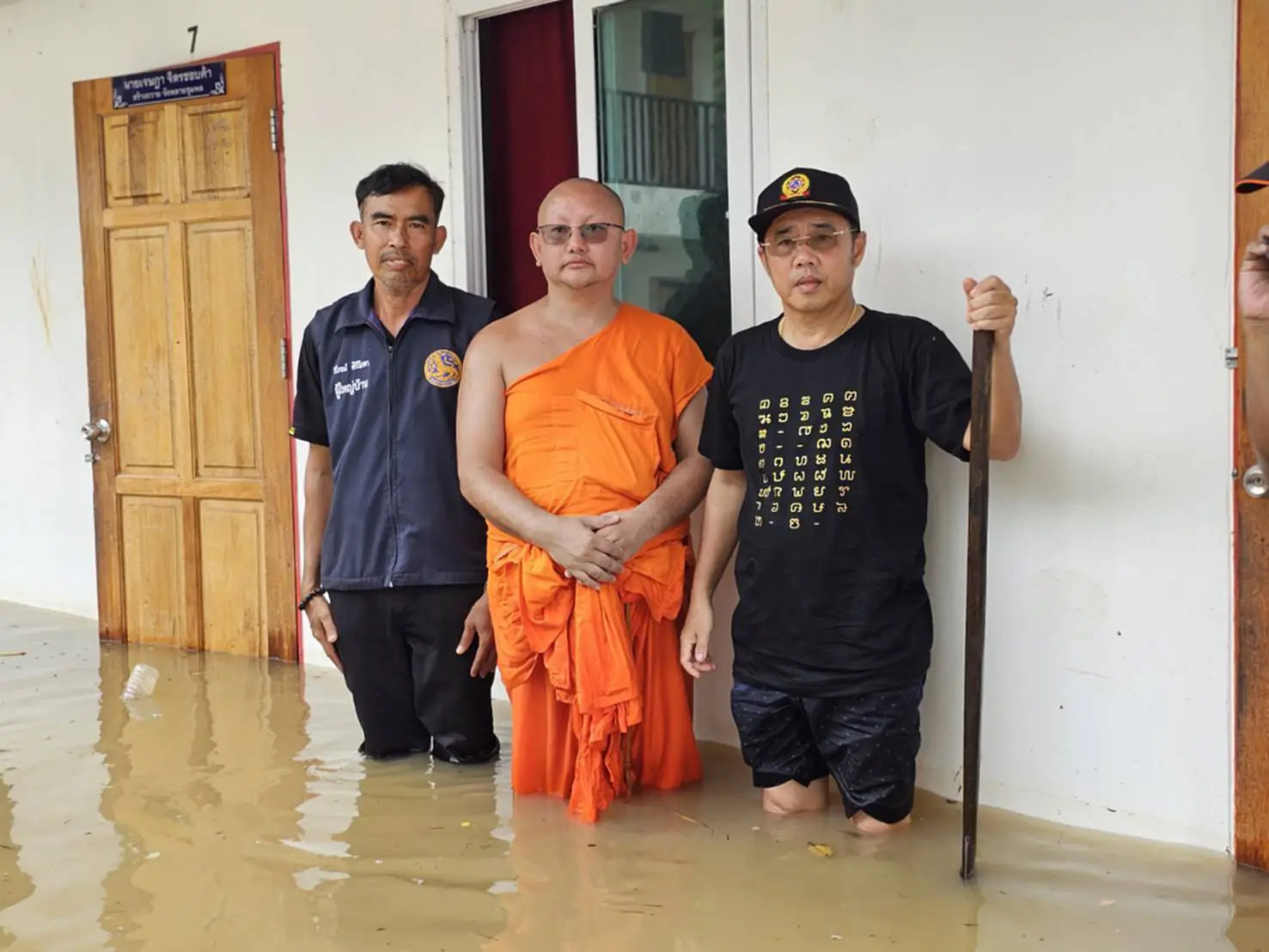 หลังจากนั้นคณะของพ่อเมืองสุโขทัย ได้นั่งเรือเข้าไปกราบนมัสการพระครูปลัดสุวัฒนสาธุคุณ เจ้าอาวาสวัดพลายชุมพล ซึ่งทางวัดประสบอุทกกัยอย่างหนัก ระดับน้ำท่วมสูงกว่า 1 เมตร พระและสามเณร ต้องหนีน้ำขึ้นไปอยู่ชั้นสองของกุฎิ