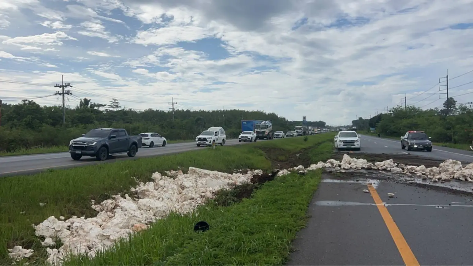 เจ้าหน้าที่จึงประสานรถยกทำการกู้ซากรถบรรทุกพ่วง และเก็บขี้ยางก้นถ้วยที่เกลื่อนบนถนน พร้อมล้างผิวถนน ป้องกันเกิดอุบัติซ้ำ เพราะขี้ยางก้นถ้วยมีน้ำไหลเต็มพื้นถนน จึงถ่ายภาพลงบันทึกไว้เป็นหลักฐาน และแจ้งบริษัทประกันภัยรถบรรทุกพ่วง 18 ล้อคันเกิดเหตุ ดำเนินการตามขั้นตอน และเปิดถนนให้รถสัญจรตามปกติ อย่างไรก็ตามอุบัติเหตุที่เกิดขึ้นกล้องหน้ารถของพลเมืองดี บันทึกไว้อย่างชัดเจน นาทีที่คนขับรถบรรทุกพ่วง 18 ล้อคันเกิดเหตุ พยายามเร่งเครื่องขึ้นเลยขวา แต่จังหวะนั้นท้ายพ่วงเกิดสะบัดตกร่องกลางถนน ทำให้รถเสียการควบคุม เสียหลักพลิกคว่ำดังกล่าว