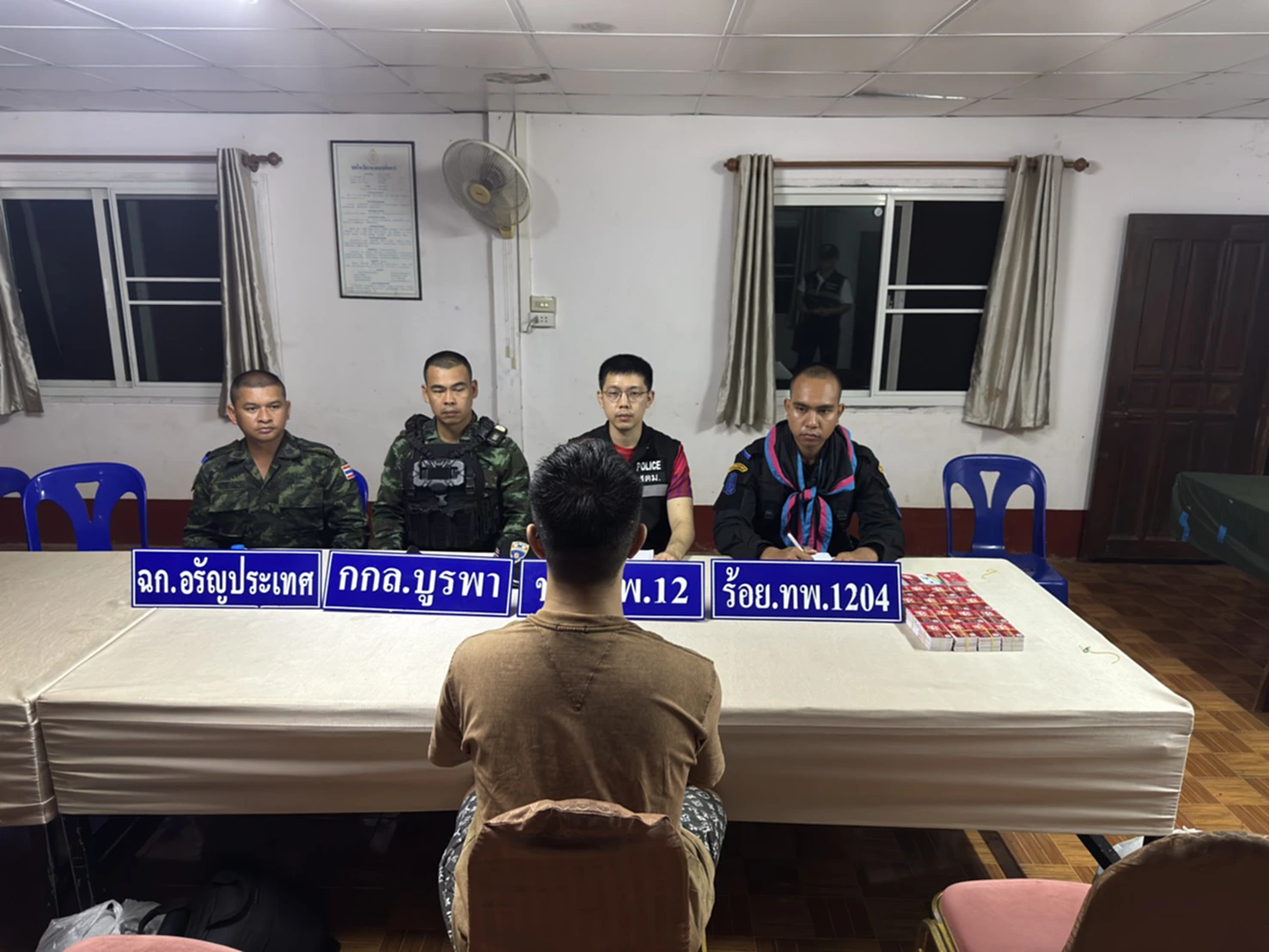 เมื่อเวลา 01.15 น. ของวันที่ 9 พ.ย.68 ผู้สื่อข่าวรายงานว่า เจ้าหน้าที่ทหารสังกัดกองกำลังบูรพา โดย พ.อ.ชัยณรงค์ กาสีย ผบ.ฉก.อรัญประเทศ สั่งการให้เจ้าหน้าที่ทหารชุดเฉพาะกิจ ฉก.อรัญประเทศ ร่วมกับ กองร้อยทหารพรานที่ 1204 ชุดควบคุมกรมทหารพรานที่ 12 และทหาร ม.พัน 30 ทำการลาดตระเวนในพื้นที่รับผิดชอบ บริเวณบ้านโนนขี้เหล็ก ต.ผ่านศึก อ.อรัญประเทศ จ.สระแก้ว พร้อมเข้าทำการตรวจสอบและจับกุม ผู้ลักลอบเข้าเมืองโดยผิดกฎหมาย (ขาเข้า) จำนวน 3 คน ซึ่งมาจาก 3 สัญชาติ ประกอบด้วย อเมริกัน, อินเดีย, และจีน