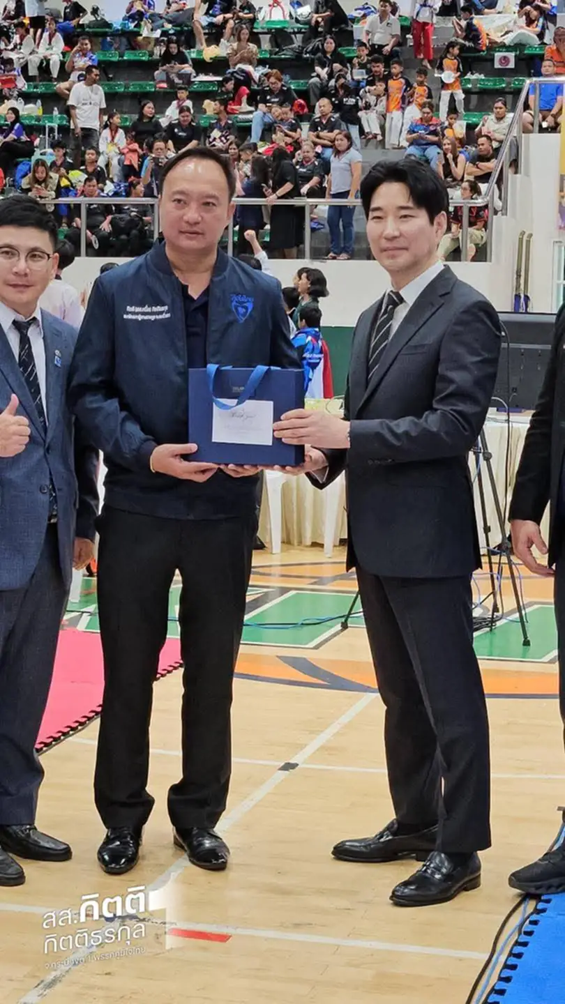 นายกิตติ กิตติธรกุล กล่าวแสดงความยินดีและให้กำลังใจแก่นักกีฬา ครูผู้ฝึกสอน และผู้จัดงาน พร้อมย้ำถึงความสำคัญของการสนับสนุนกิจกรรมด้านกีฬาที่ช่วยสร้างชื่อเสียงและความภาคภูมิใจให้กับจังหวัดกระบี่