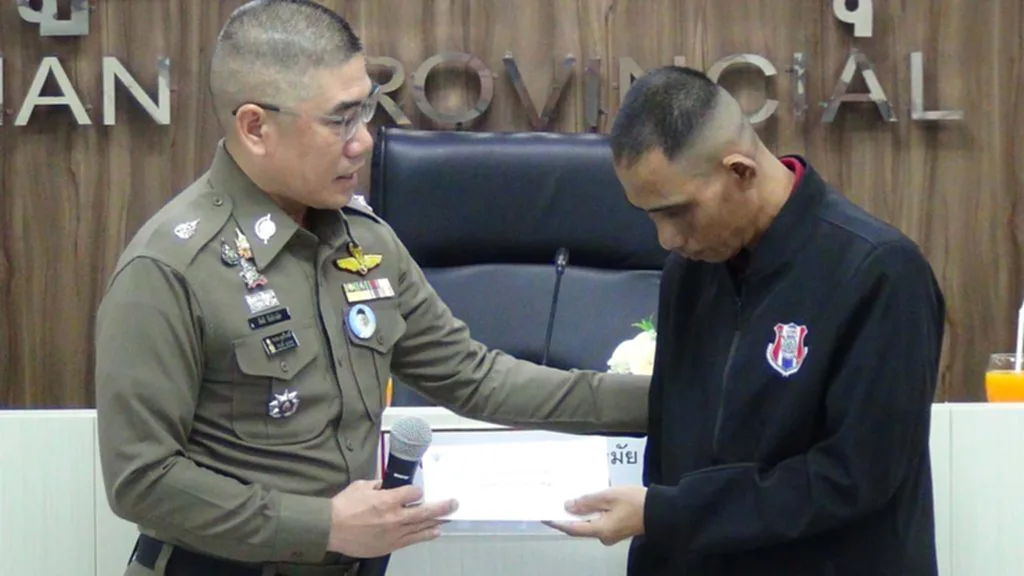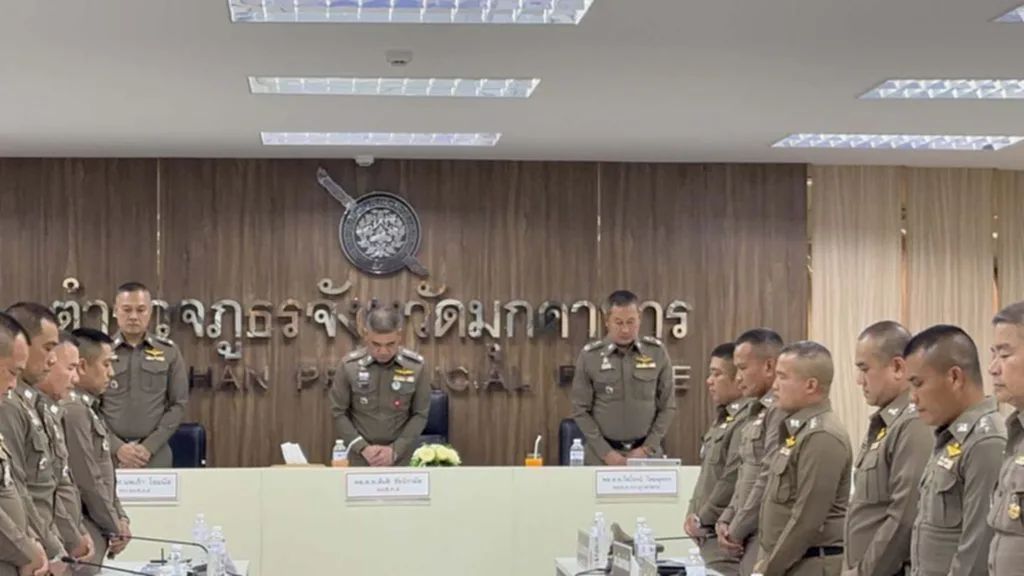 วันที่ 9 พฤศจิกายน 2568 พล.ต.ต.ไพโรจน์ ไทยพุทรา ผบก.ภ.จว.มุกดาหาร พร้อมด้วย ข้าราชการตำรวจในสังกัด ให้การต้อนรับ พล.ต.ท.สันติ ชัยนิรามัย ผบช. ภ.4 ที่มาตรวจราชการและมอบนโยบาย มอบถุงยังชีพ และมอบเงินรางวัลบำรุงขวัญ ด.ต.อถิสันห์ ฆรินหุ์งามพิศ ผบ.หมู่ (ป) สภ.เมืองมุกดาหารที่ได้รับการบาดเจ็บจากการปฏิบัติหน้าที่