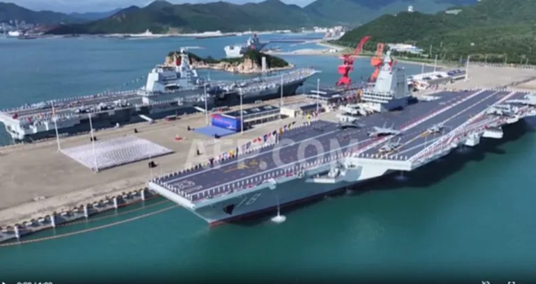 สีจิ้นผิง ซึ่งเป็นเลขาธิการใหญ่คณะกรรมการกลางพรรคคอมมิวนิสต์จีน และประธานคณะกรรมาธิการการทหารส่วนกลาง ขึ้นตรวจเยี่ยมเรือบรรทุกเครื่องบินฝูเจี้ยน ที่ฐานทัพเรือในเมืองซานย่า มณฑลไห่หนาน