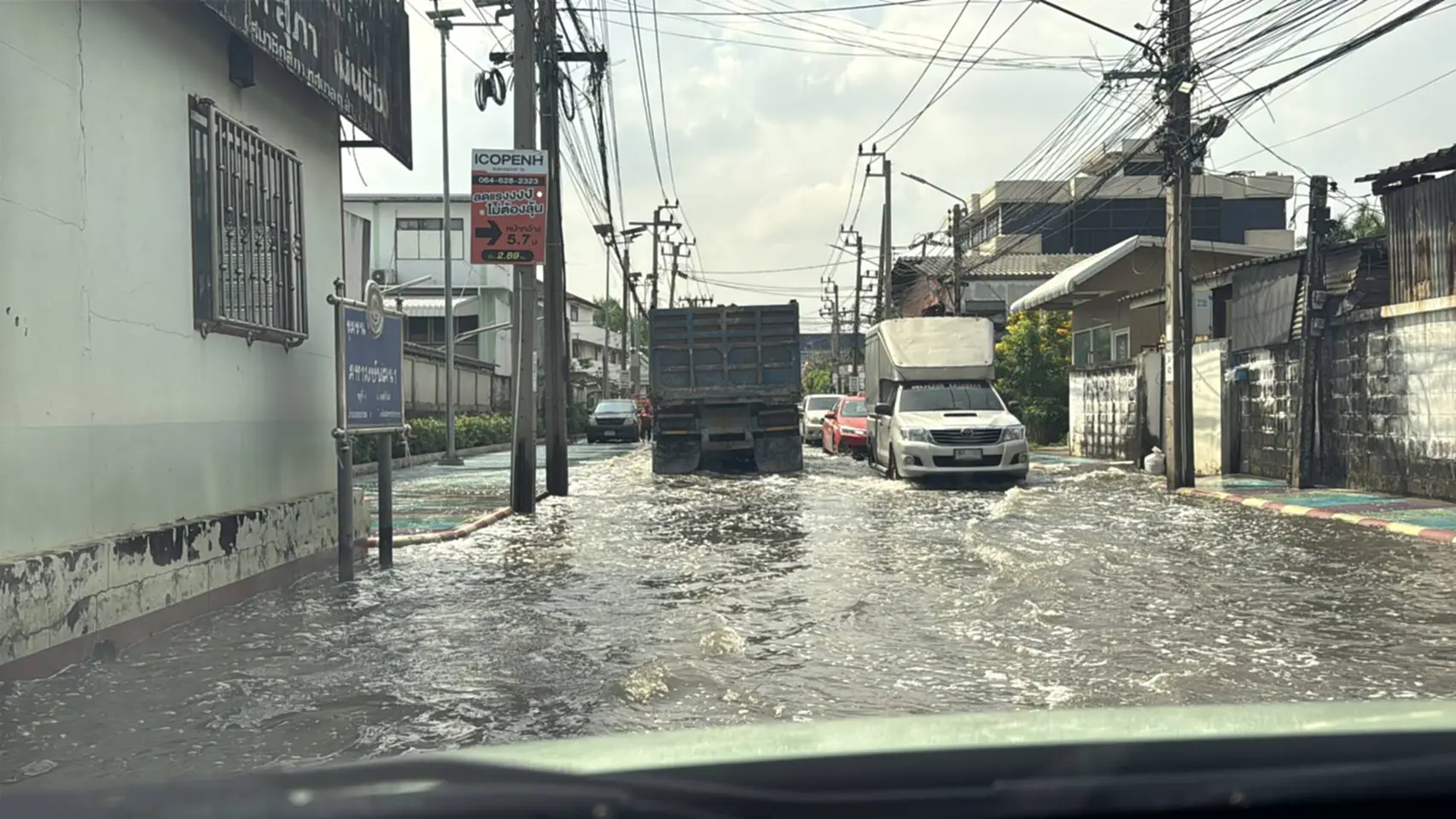 ส่วนพื้นที่ ถนนปู่เจ้าสมิงพราย และถนนรถราง พบมีน้ำหนุนเข้าท่วมหลายจุด ทำให้ประชาชนที่ใช้เส้นทางต้องเพิ่มความระมัดระวัง โดยเฉพาะบริเวณจุดกลับรถใต้สะพานที่มีน้ำท่วมขัง