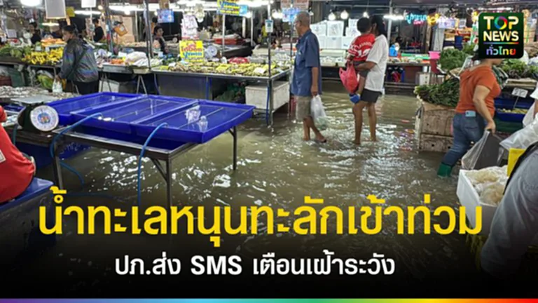 น้ำทะเลหนุนสูงท่วมสมุทรปราการหลายพื้นที่ ปภ.ส่ง SMS เตือนเฝ้าระวังถึง 14 พ.ย.นี้