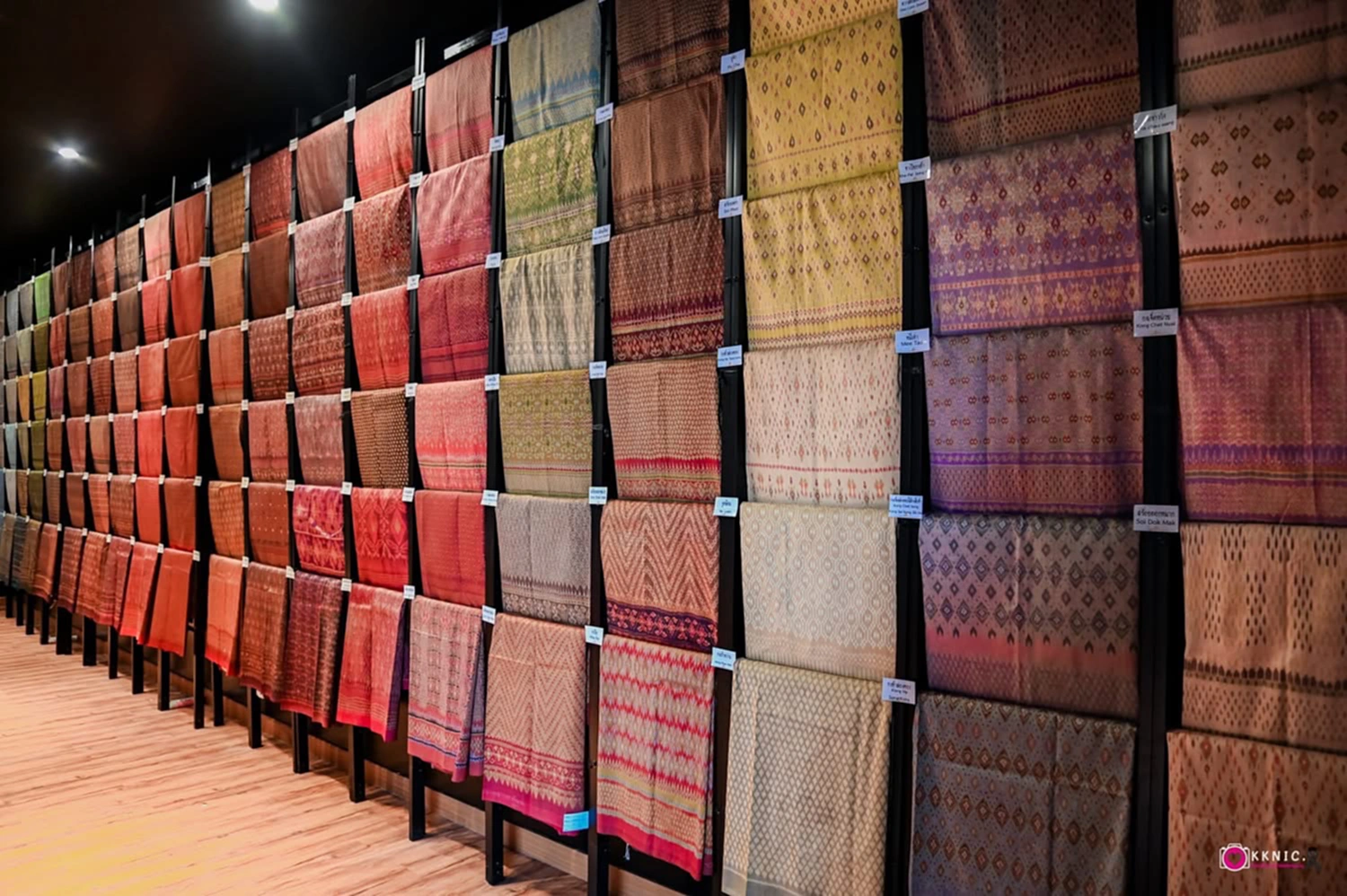 ไฮไลต์: กำแพงผ้าไหมมัดหมี่ที่ใหญ่ที่สุดในประเทศไทย รวมผ้าไหมลายโบราณและลายอนุรักษ์กว่าร้อยผืน ฝีมือช่างท้องถิ่น