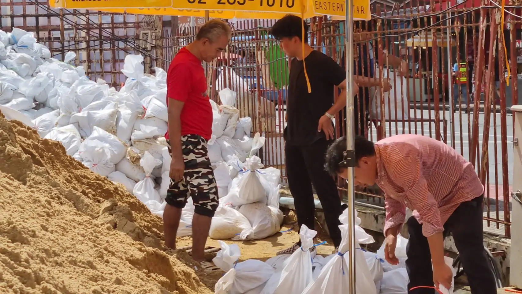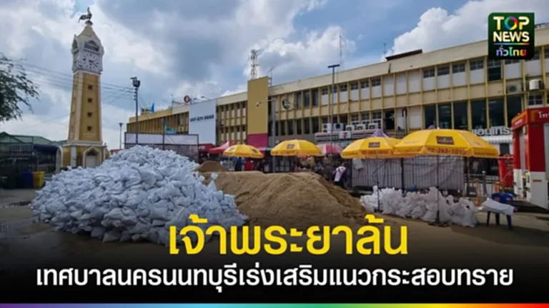เจ้าพระยาล้นเทศบาลนครนนทบุรีเร่งเสริมแนวกระสอบทราย หลังน้ำทะเลหนุนระดับเพิ่มสูง