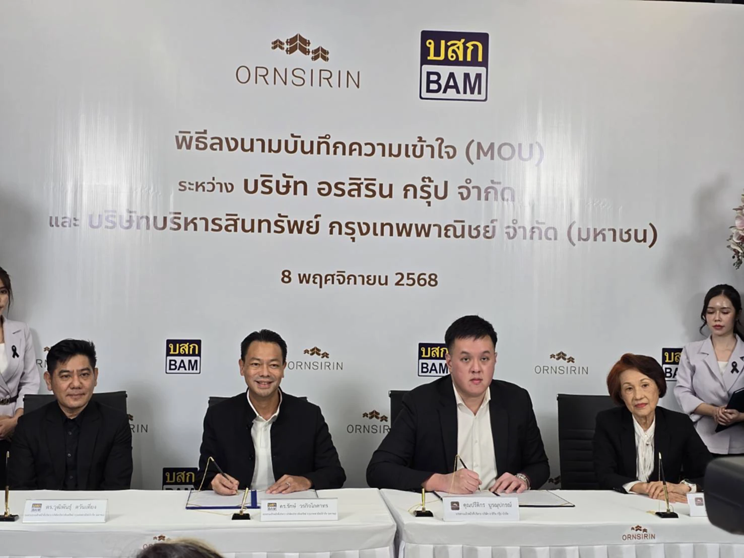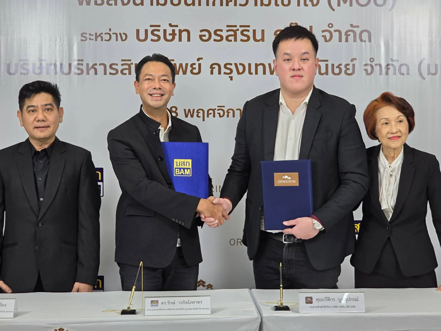 บริษัท บริหารสินทรัพย์ กรุงเทพพาณิชย์ จำกัด (มหาชน) หรือ BAM ผนึกกำลัง บริษัท อรสิริน กรุ๊ป จำกัด (ORN) ผู้พัฒนาอสังหาริมทรัพย์ชั้นนำในภาคเหนือ ลงนามบันทึกข้อตกลงความร่วมมือทางธุรกิจ (MOU) เพื่อพัฒนาและบริหารจัดการทรัพย์สินรอการขาย (NPA) ให้เกิดมูลค่าเพิ่ม พร้อมต่อยอดสู่การสร้างโอกาสใหม่ในตลาดอสังหาริมทรัพย์ไทย อย่างยั่งยืน