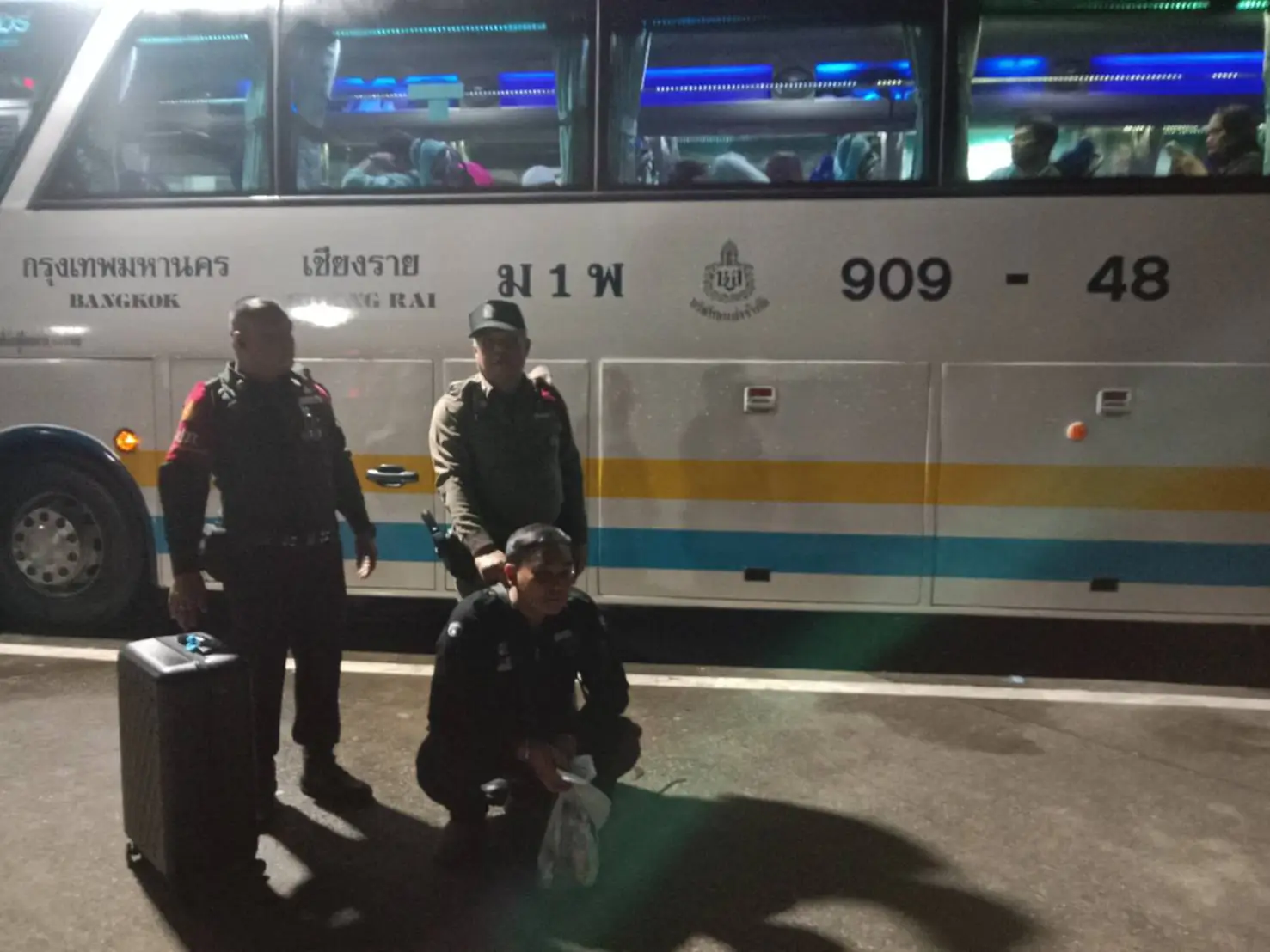 เมื่อวันที่ 9 พฤศจิกายน 2568 เวลาประมาณ 17.30 น. ภายใต้การอำนวยการของ พล.ต.ต.มานพ เสนากูล ผบก.ภ.จว.เชียงราย พ.ต.อ.เกียรติศักดิ์ จิตรประสาร ผกก.สภ.แม่จัน รรท.ผกก.สภ.เมืองเชียงราย ได้รับแจ้งจากสายลับว่าจะมีผู้ต้องหาลักลอบขนยาเสพติด โดยลักลอบขนยาเสพติดขึ้นมาบนรถทัวร์ ของบริษัทสมบัติทัวร์ จึงสั่งการให้เจ้าหน้าที่ตำรวจในพื้นที่ไปทำการตรวจสอบ