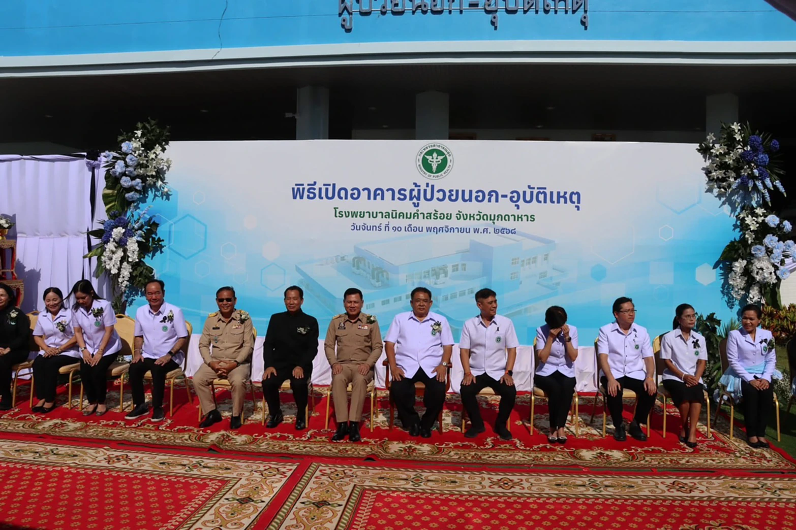 วันนี้ (10 พฤศจิกายน 2668) นายวรโชติ สุคนธ์ขจร รัฐมนตรีช่วยว่าการกระทรวงสาธารณสุข เป็นประธานพิธีเปิดอาคารผู้ป่วยนอกและอุบัติเหตุ โรงพยาบาลนิคมคำสร้อย จังหวัดมุกดาหาร โดยมี นายวรญาณ บุญณราช ผู้ว่าราชการจังหวัดมุกดาหาร นายแพทย์ธิติ แสวงธรรม รักษาการในตำแหน่งผู้ตรวจราชการกระทรวงสาธารณสุข เขตสุขภาพที่ 10 นายแพทย์ณรงค์ จันทร์แก้ว นายแพทย์สาธารณสุขจังหวัดมุกดาหาร แพทย์หญิงนารีกาน สังขะฤกศร์ ผู้อำนวยการโรงพยาบาลนิคมคำสร้อย คณะผู้บริหาร บุคลากร เจ้าหน้าที่โรงพยาบาลนิคมคำสร้อย ร่วมพิธี