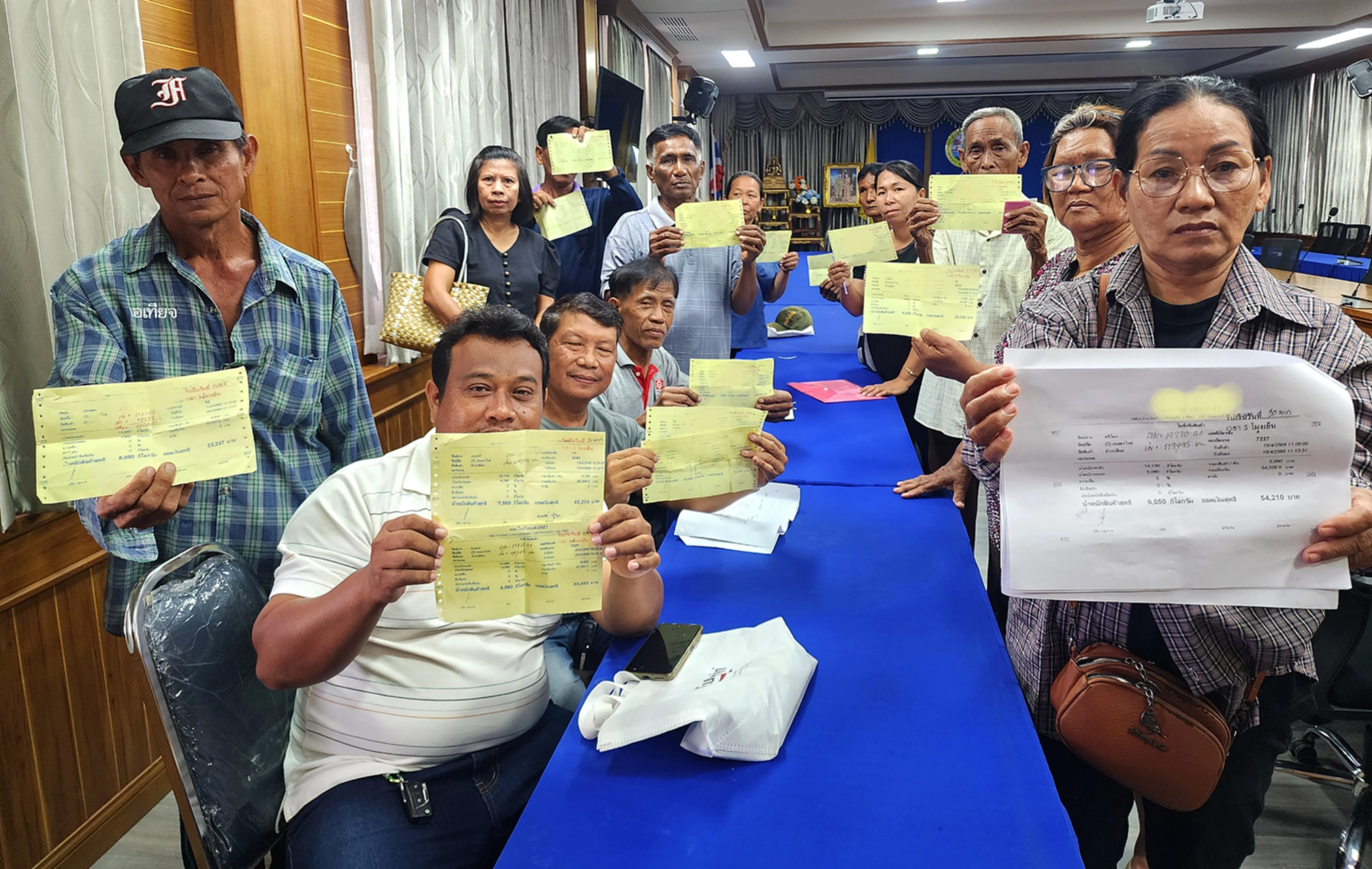ส่วนเพื่อนชาวนาคนอื่นๆ ที่รวมตัวกันมาร้องทุกข์วันนี้ 14 ราย ก็ได้เงินทยอยจ่ายเช่นเดียวกับตน บางคนได้ 10,000 บาท บางคนได้ 30,000 – 50,000 บาท ทั้งๆ ที่ยอดเงินค้างชำระต่อรายนับแสนบาท แต่ก็ได้มาเพียงเท่านั้นรวมยอดที่ค้างชำระชาวนาทั้ง 14 ราย รวมแล้วน่าจะมากกว่า 1 ล้านบาท จึงทำให้มีความทุกข์เพราะไม่มีเงินใช้หนี้ ธกส. เจ้าหนี้ค่าปุ๋ย ค่ายา ค่าเช่านา ก็ทวงถามพวกเราชาวนาจนหนทาง