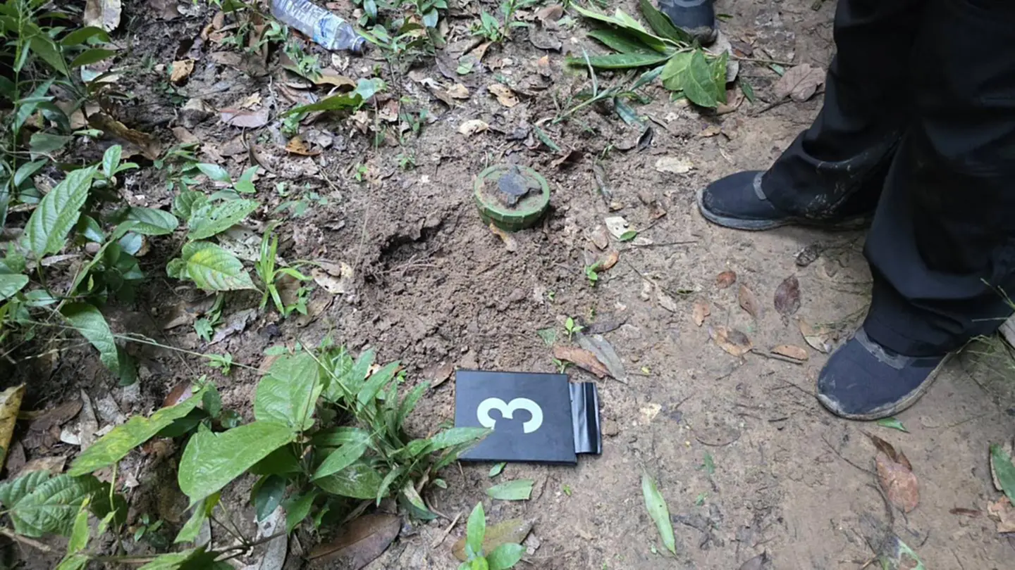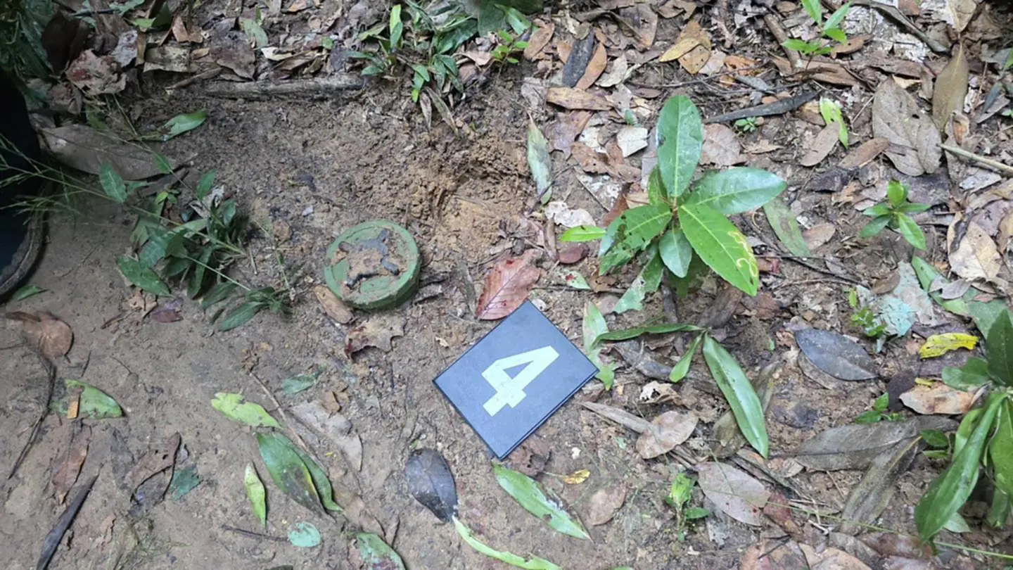 2. ชิ้นส่วนทุ่นระเบิด PMN-2 อยู่ภายในหลุมและพื้นที่ใกล้เคียง