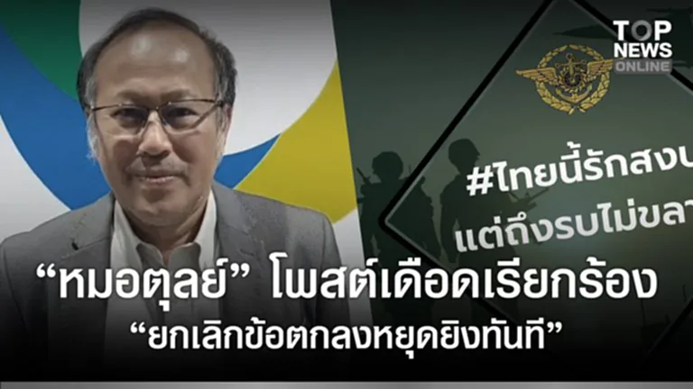 นพ.ตุลย์ระบุว่า “รัฐบาลต้องประกาศ ยกเลิกข้อตกลงหยุดยิงทันที และเปิดทางให้กองทัพดำเนินการทางทหารเต็มรูปแบบ เพื่อปกป้องอธิปไตยของชาติ”