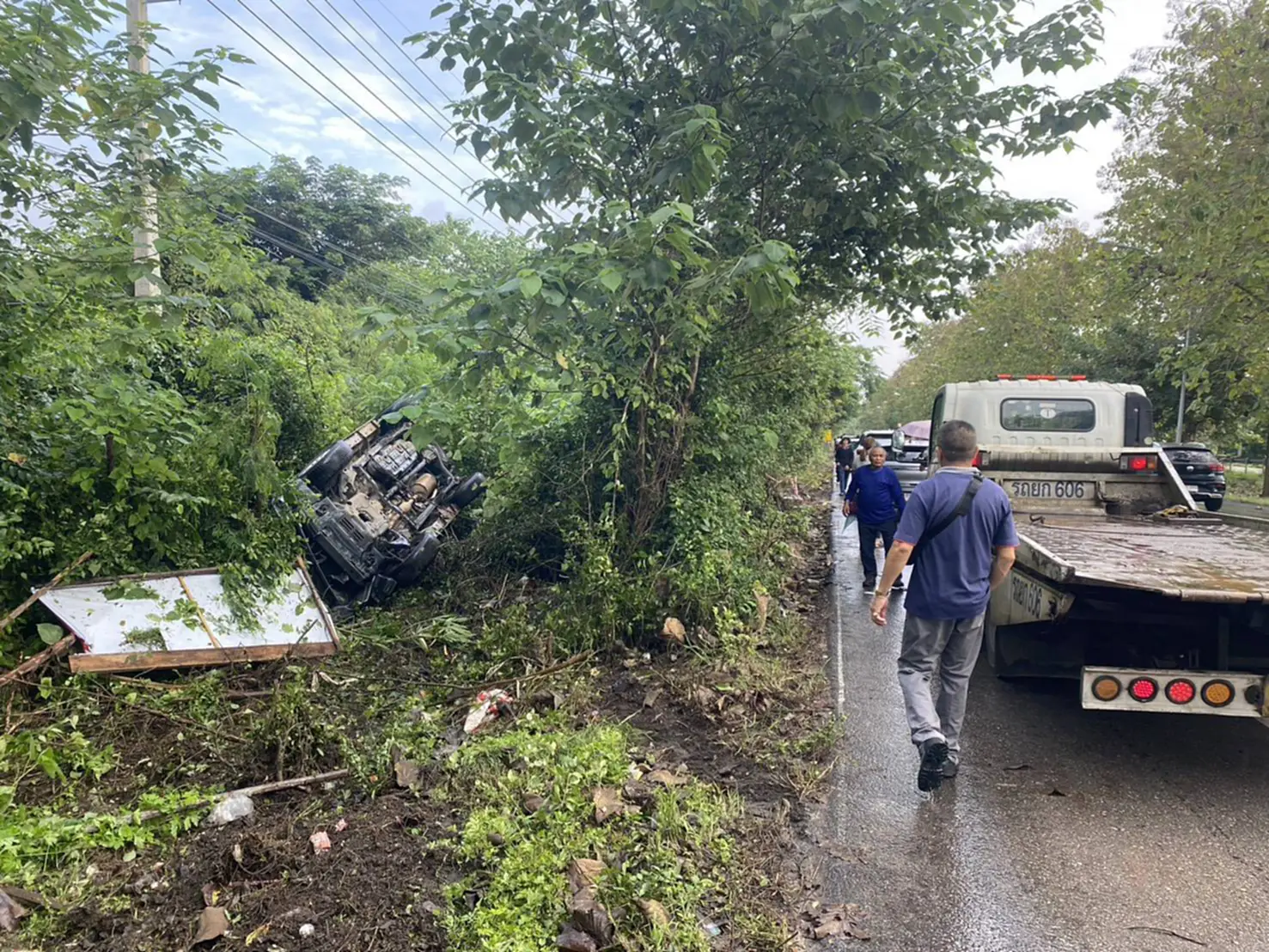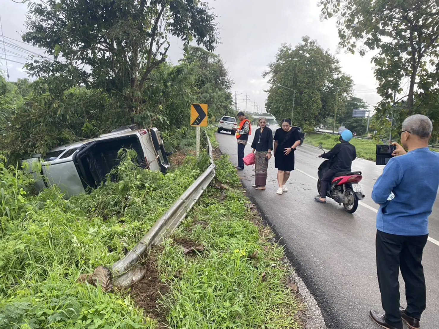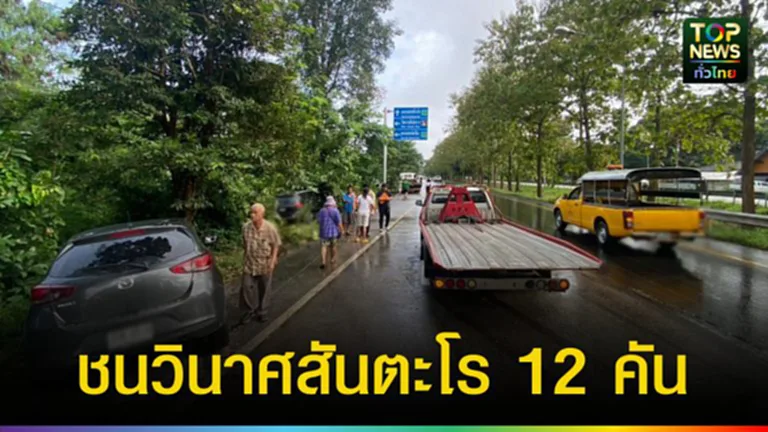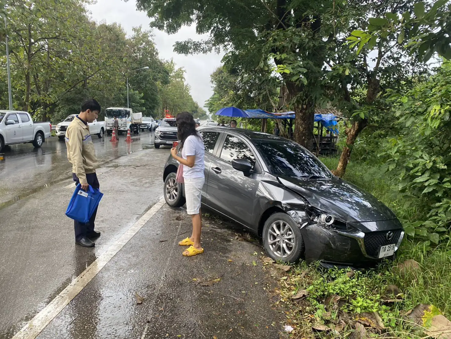 ในที่เกิดเหตุพบรถยนต์และรถกระบะรวม 12 คัน เสียหลักชนกันต่อเนื่อง บางคันพลิกคว่ำ บางคันพุ่งชนต้นไม้และราวเหล็กกั้นถนน มีผู้ได้รับบาดเจ็บเล็กน้อย 4 ราย เจ้าหน้าที่เร่งช่วยเหลือนำส่งโรงพยาบาล