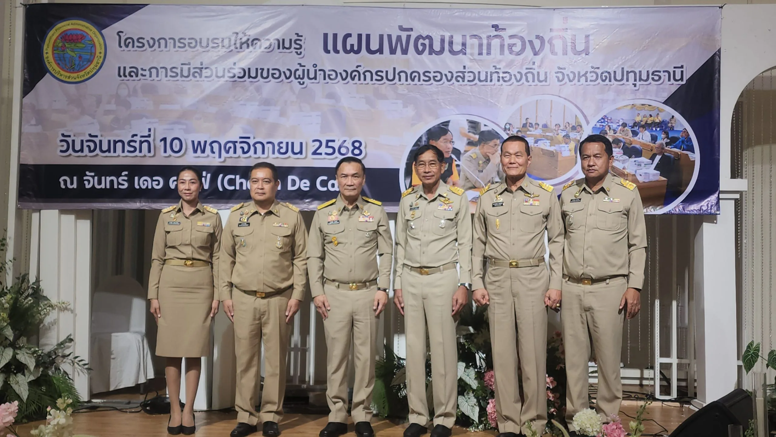 เมื่อเวลา 10.30 น. วันที่ 10 พฤศจิกายน 2568 ที่ ร้านจันทร์เดอ คาเฟ่ คลอง 10 ธัญบุรี ต.บึงสนั่น อ.ธัญบุรี จ.ปทุมธานีนายทรงศักดิ์ ทองศรี  รัฐมนตรีช่วยว่าการกระทรวงมหาดไทย พร้อมด้วยทีมงานกระทรวงมหาดไทย เป็นประธานเปิดการสัมมนาโครงการอบรมให้ความรู้แผนพัฒนาท้องถิ่นและการมีส่วนร่วม ของผู้นำองค์กรปกครองส่วนท้องถิ่น จังหวัดปทุมธานี  โดยมี นายเอกวิทย์ มีเพียร ผู้ว่าราชการจังหวัดปทุมธานี พลตำรวจโท คำรณวิทย์ ธูปกระจ่าง นายกองค์การบริหารส่วนจังหวัดปทุมธานี หัวหน้าส่วนราชการจังหวัดปทุมธานี ผู้บริหาร อบจ.ปทุมธานี นายอำเภอ นายกองค์กรปกคลองส่วนท้องถิ่น ข้าราชการส่วนท้องถิ่น และเจ้าหน้าที่ผู้ปฏิบัติงานที่เกี่ยวข้องงบประมาณ เข้าร่วม พร้อมเพรียงกัน