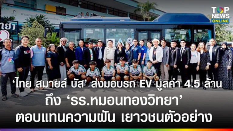 ตอบแทนความฝัน “ไทย สมายล์ บัส” ส่งมอบรถ EV มูลค่า 4.5 ล้าน ถึง รร.หมอนทองวิทยา ผู้บริหาร TSB ย้ำชื่นชมเยาวชนตัวอย่าง