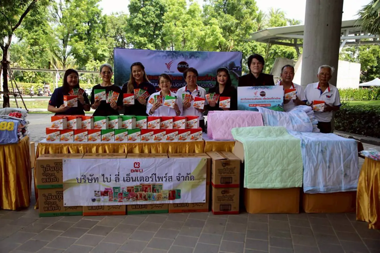 สำหรับการมอบสิ่งของในครั้งนี้ ประกอบไปด้วย สีทาอาคาร 7 ถัง ชุดนักเรียน 54 ชุด ชุดพละ 54 ชุดรองเท้านักเรียนและรองเท้ากีฬา จำนวน 108 คู่ จากกระทรวงทรัพยากรธรรมชาติและสิ่งแวดล้อม โต๊ะปิงปองพร้อมอุปกรณ์ จำนวน 2 ชุด จาก ดร.จำลอง ช่วยรอด คณะที่ปรึกษารัฐมนตรีช่วยว่าการกระทรวงพานิชย์ อุปกรณ์การเรียน จำนวน 100 ชุด และอุปกรณ์กีฬา ได้แก่ ลูกฟุตบอล ลูกวอลเลย์บอล และลูกบาสเกตบอล รวม 9 ชิ้น จากบริษัท ไทย สมายล์ บัส จำกัด ชุดนักเรียนจำนวน 54 ชุด จากบริษัท พลังงานบริสุทธิ์ จำกัด (มหาชน) ขนมเส้นบุกปรุงรสหม่าล่า 72,000 ซอง ผ้าห่ม 83 ผืน จากบริษัท ไบ่ ลี่ เอ็นเตอร์ไพรส์ จำกัด และผ้าห่ม จำนวน 40 ผืน เสื้อกันหนาว 40 ตัว ถุงเท้า 100 คู่ ชุดอุปกรณ์การเรียน 50 ชุด จากบริษัท ไทยสแตนเลย์การไฟฟ้า จำกัด (มหาชน)