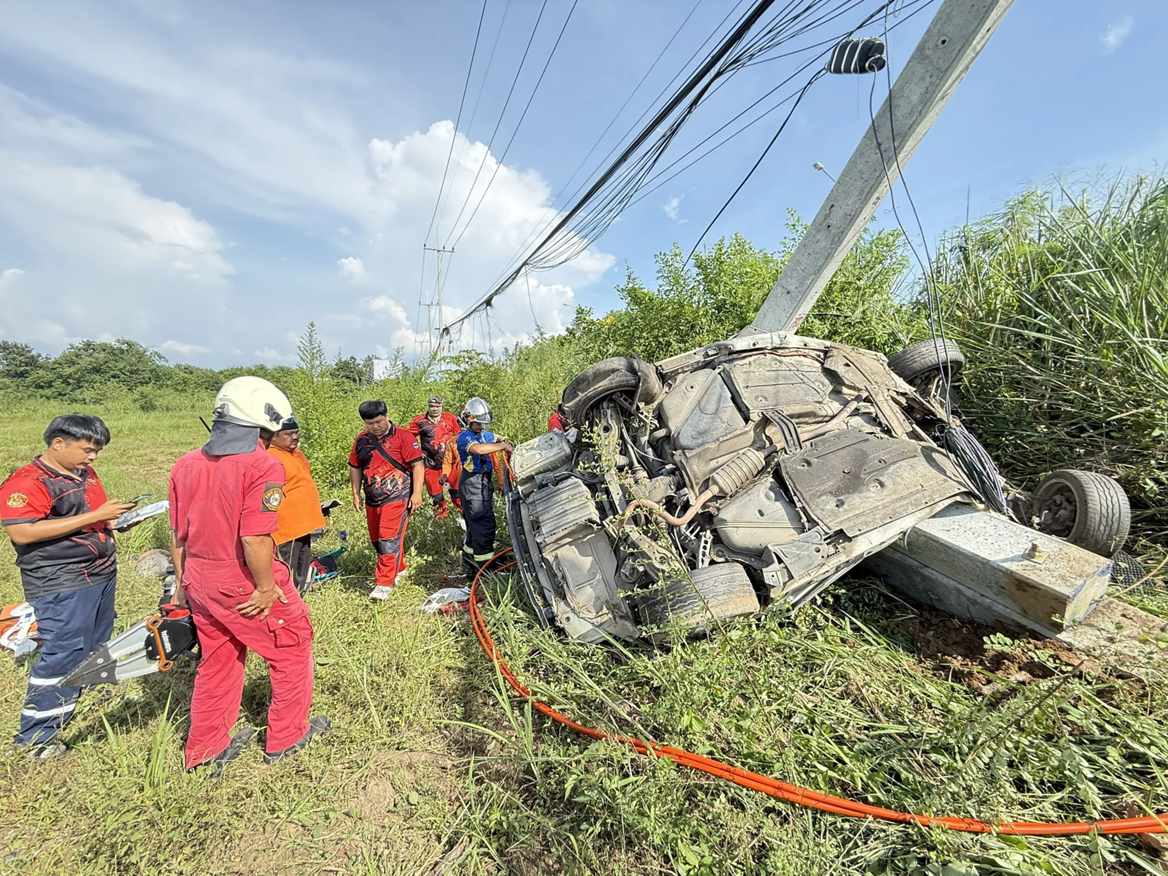 เมื่อเวลา 14.20 น. วันที่ 11 พ.ย.68ร.ต.อ.ฐานิต ที่ภักดี รองสารวัตรสอบสวน สภ.สัตหีบ จ.ชลบุรี ได้รับแจ้งอุบัติเหตุรถยนต์ชนเสาไฟฟ้าริมถนนสาย 332 บริเวณหน้าเทศบาลตำบลเกล็ดแก้ว ขาเข้าแยกเกษมพล หมู่ 6 ต.บางเสร่ อ.สัตหีบ มีผู้ติดภายในรถเสียชีวิต จึงประสานเจ้าหน้าที่หน่วยกู้ชีพ รพ.สัตหีบ กม.10 งานป้องกันและบรรเทาสาธารณภัยเทศบาลตำบลเกล็ดแก้ว เทศบาลตำบลเขตรอุดมศักดิ์ และหน่วยกู้ภัยมูลนิธิสว่างโรจนธรรมสถาน เข้าช่วยเหลือ