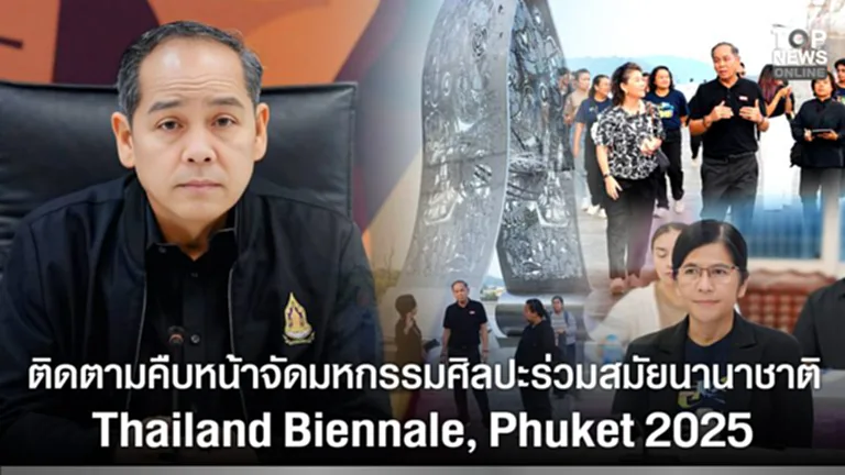 เมื่อวันที่ 9-10 พฤศจิกายน 2568 นายประสพ เรียงเงิน ปลัดกระทรวงวัฒนธรรม (วธ.) ลงพื้นที่เพื่อติดตามความคืบหน้าและประชุมสรุปผลโครงการจัดมหกรรมศิลปะร่วมสมัยนานาชาติ Thailand Biennale, Phuket 2025 ณ จังหวัดภูเก็ต โดยมีนางเกษร กำเหนิดเพ็ชร ผู้อำนวยการสำนักงานศิลปวัฒนธรรมร่วมสมัย (ผอ.สศร.) ผู้บริหารวธ. นางพวงผกา เชาวน์ไวย วัฒนธรรมจังหวัดภูเก็ต นางอัญชลี วานิช เทพบุตร นายกสมาคมศิลป์ภูเก็จ ผู้บริหาร ข้าราชการและเจ้าหน้าที่วธ.และเครือข่ายศิลปิน ร่วมลงพื้นที่