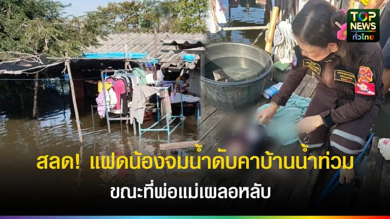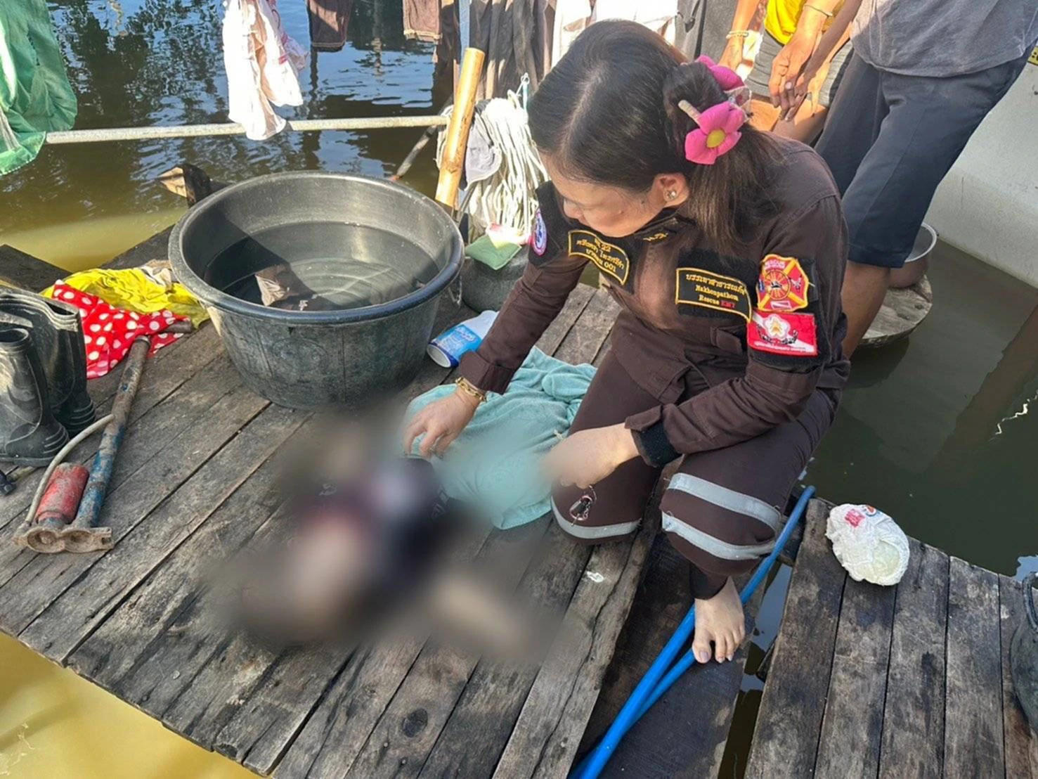 ​ใจสลาย! เหตุการณ์เศร้าที่บ้านคลองบัว นครปฐม หนูน้อยฝาแฝดวัยกำลังซน พลัดตกน้ำเสียชีวิต ขณะที่พ่อแม่เผลอหลับ เพื่อนบ้านมาพบเป็นศพ ลอยน้ำไร้ลมหายใจ ท่ามกลางภาวะน้ำท่วมบ้าน​