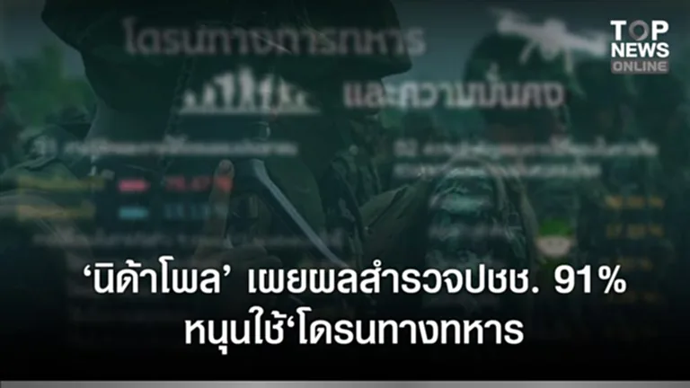 "นิด้าโพล" เผยผลสำรวจปชช. 91% หนุนใช้โดรนทางทหาร-อาวุธสังหารอัตโนมัติในภารกิจ มองเพิ่มประสิทธิภาพในการโจมตี การป้องกันภัย ลดความเสี่ยงต่อชีวิต