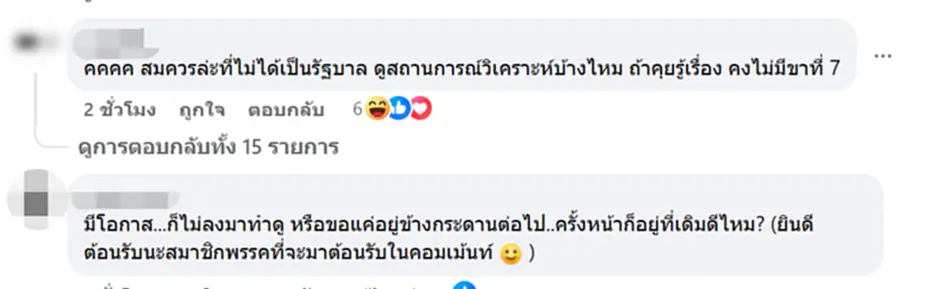เมื่อโพสต์ดัวกล่าวเผยแพร่ออกไป ชาวเน็ตจำนวนมากได้แสดงความคิดเห็นโต้แรง อาทิ คคคค สมควรล่ะที่ไม่ได้เป็นรัฐบาล ดูสถานการณ์วิเคราะห์บ้างไหม ถ้าคุยรู้เรื่อง คงไม่มีขาที่ 7 , มีโอกาส…ก็ไม่ลงมาทำดู หรือขอแค่อยู่ข้างกระดานต่อไป..ครั้งหน้าก็อยู่ที่เดิมดีไหม? (ยินดีต้อนรับนะสมาชิกพรรคที่จะมาต้อนรับในคอมเม้นท์ 🙂 ) , ข้อเสนอที่ไม่จบ เลิกทำเป็นสุภาพบุรุษได้แล้ว พรรคเด็กขาดประสบการณ์ มีโอกาสแล้ว ไมทำเอง ดีแต่เสนอ ครั้งต่อไปไม่เลือก , อย่าดีแต่ปากคนเจ็บคนตายไม่ใช่นักการเมือง พวกปากเก่งไปใช้ชีวิตที่แนวหน้าและหน้าแนวดู การฑูตใช้ไม่ได้กับเขมร , ตกอยู่เป็นเมืองขึ้นหรอ ต้องรายงาน มาเลเซีย สหรัฐ ประเทศไทยมีอธิปไตย เป็นต้น