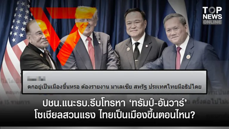 โซเชียลสวนแรง ไทยเป็นเมืองขึ้นตอนไหน “พรรคปชน.” ห่วงปัญหาชายแดน โชว์กึ๋นแนะรัฐบาล รีบโทรหา”ทรัมป์-อันวาร์” – Top News รายงาน