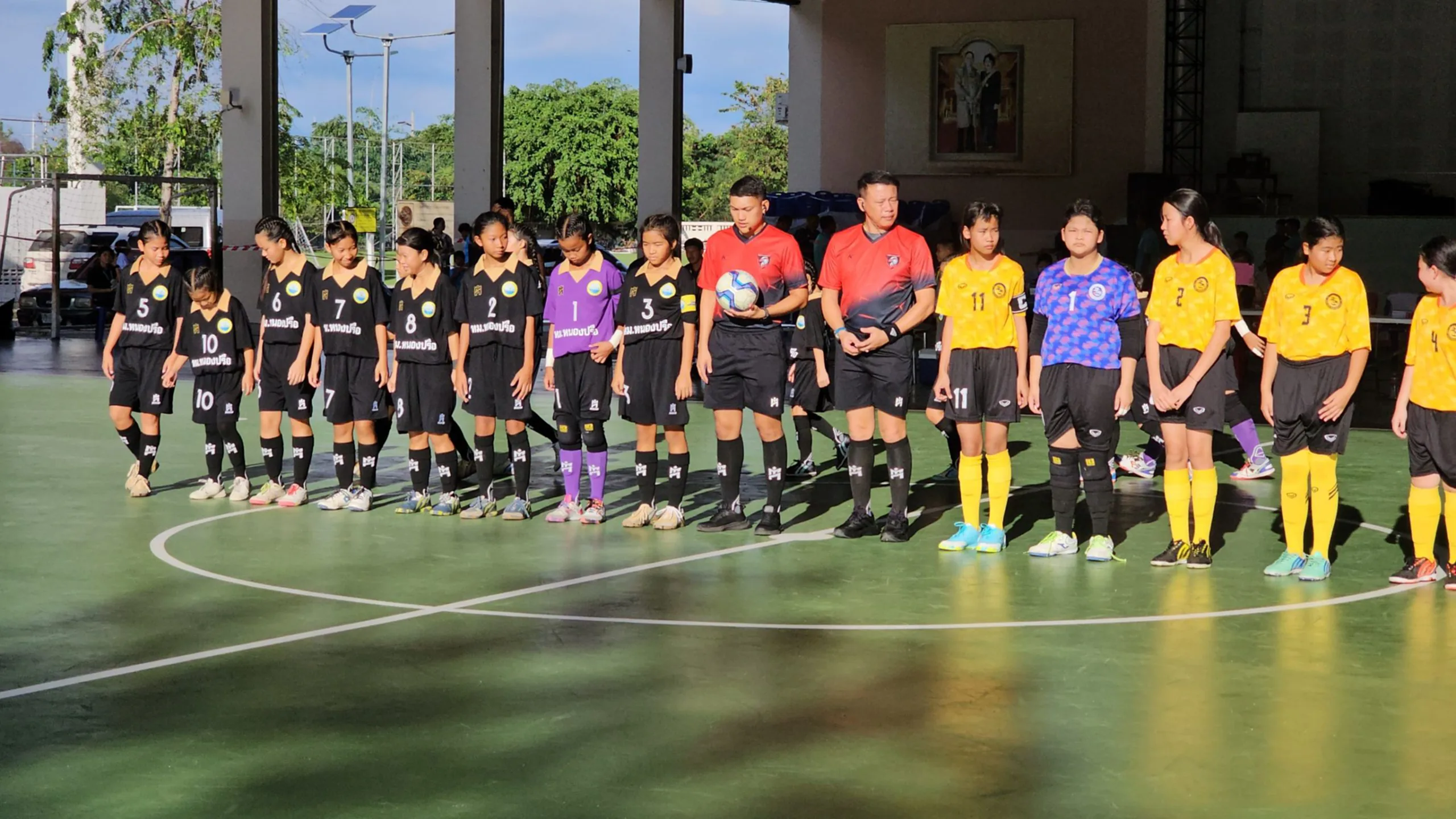 ที่สนามโรงเรียนอนุบาลนานาชาติตากสินระยอง ทีมฟุตซอลหญิง รุ่น 12 ปี ลงสนามนัดแรก เจอกับ ทีม อบจ.ระยอง โดยเกมส์แข่งขันครึ่งละ 15 นาที ส่วนการแข่งขันครึ่งแรก ทีมฟุตซอลหญิง รุ่น 12 ปี ของโรงเรียนอนุบาลเทศบาลเมืองหนองปรือ นักเตะยังมีอาการเกร็งๆ ติดๆขัดๆ แต่เป็นฝ่ายบุกตลอด จบครึ่งแรก เสมอ 0 ประตูต่อ 0