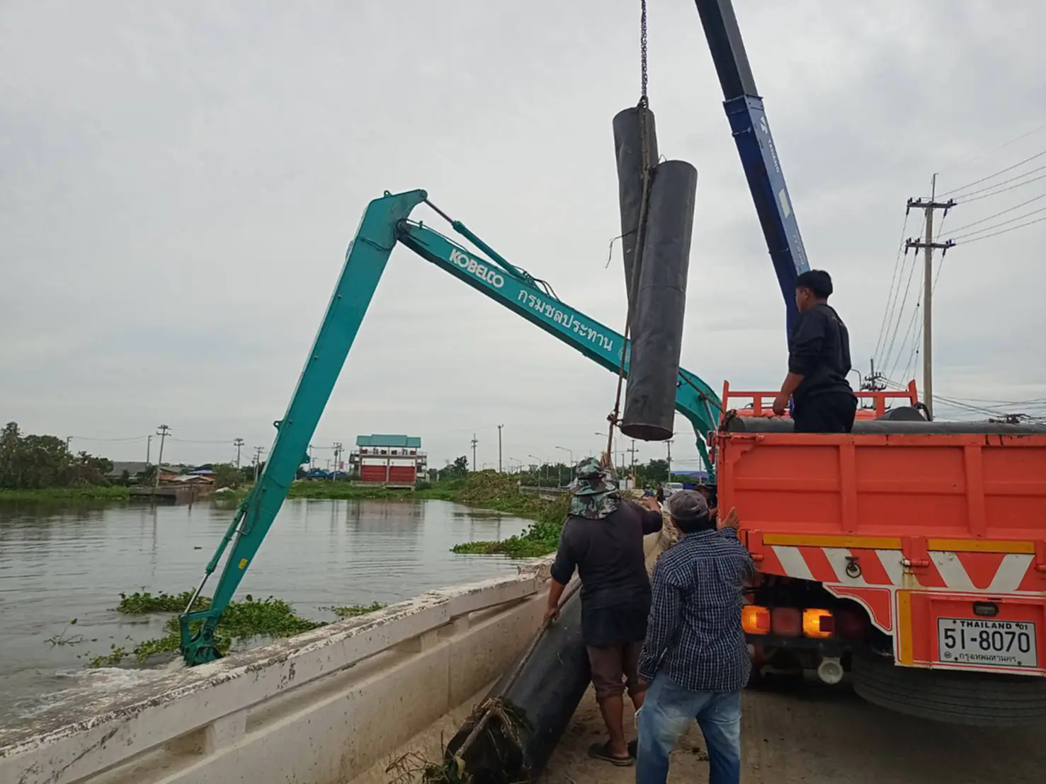 กรมโยธาธิการและผังเมือง กระทรวงมหาดไทย ส่งเรือกำจัดผักตบชวาร่วมแก้ปัญหาน้ำท่วมและป้องกันผักตบชวาติดเครื่องผลักดันน้ำ เพื่อสนับสนุนภารกิจเร่งระบายน้ำในแม่น้ำท่าจีนบริเวณสะพานนครชัยศรี อำเภอนครชัยศรี จังหวัดนครปฐม และบริเวณสะพานวัดท่าเจดีย์ อำเภอสองพี่น้อง จังหวัดสุพรรณบุรี ซึ่งเป็นพื้นที่ที่ได้รับผลกระทบจากพายุ “คัลแมกี”